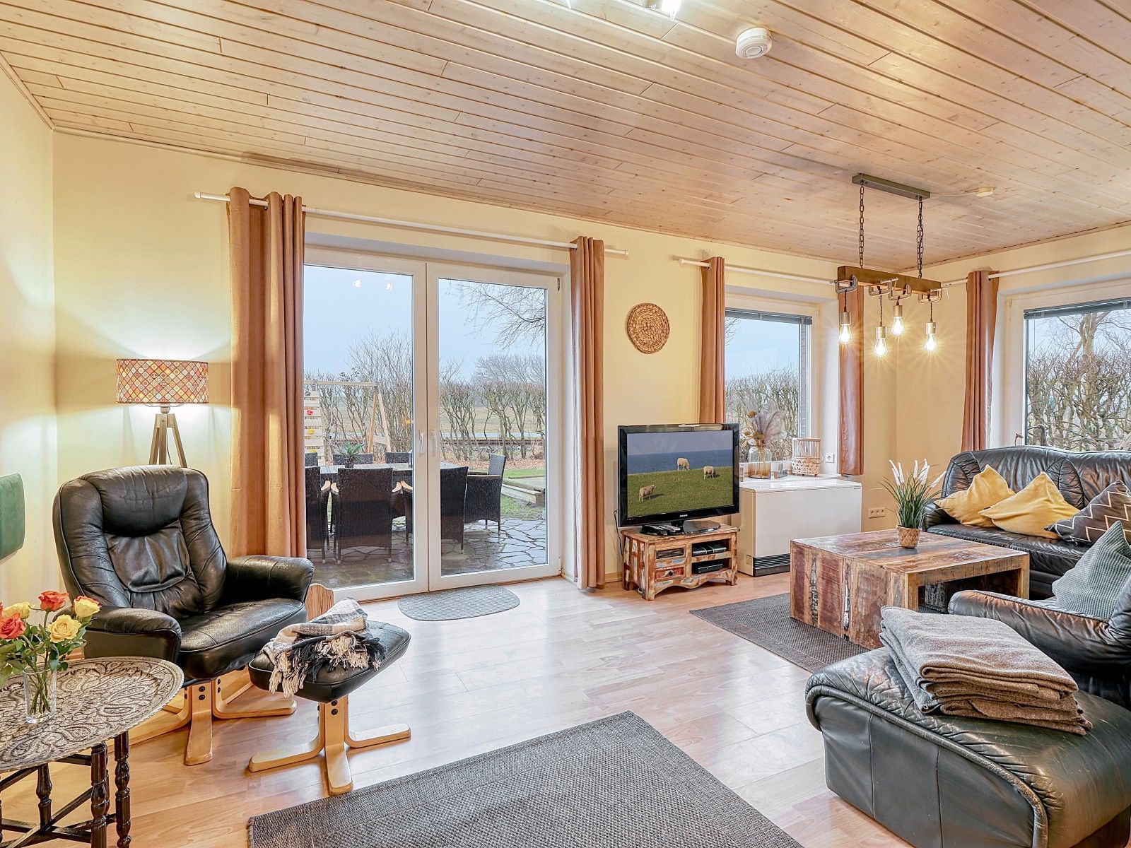 Dieses großzügige Ferienhaus in Dagebüll bietet Platz für bis zu acht Gäste und überzeugt mit seiner ruhigen Lage und freiem Blick über grüne Felder bis hin zum Nordseedeich. Der überdachte Balkon lädt zu jeder Tageszeit zum Genießen ein ob am Morgen mit einer Tasse Kaffee oder am Abend beim Sonnenuntergang.