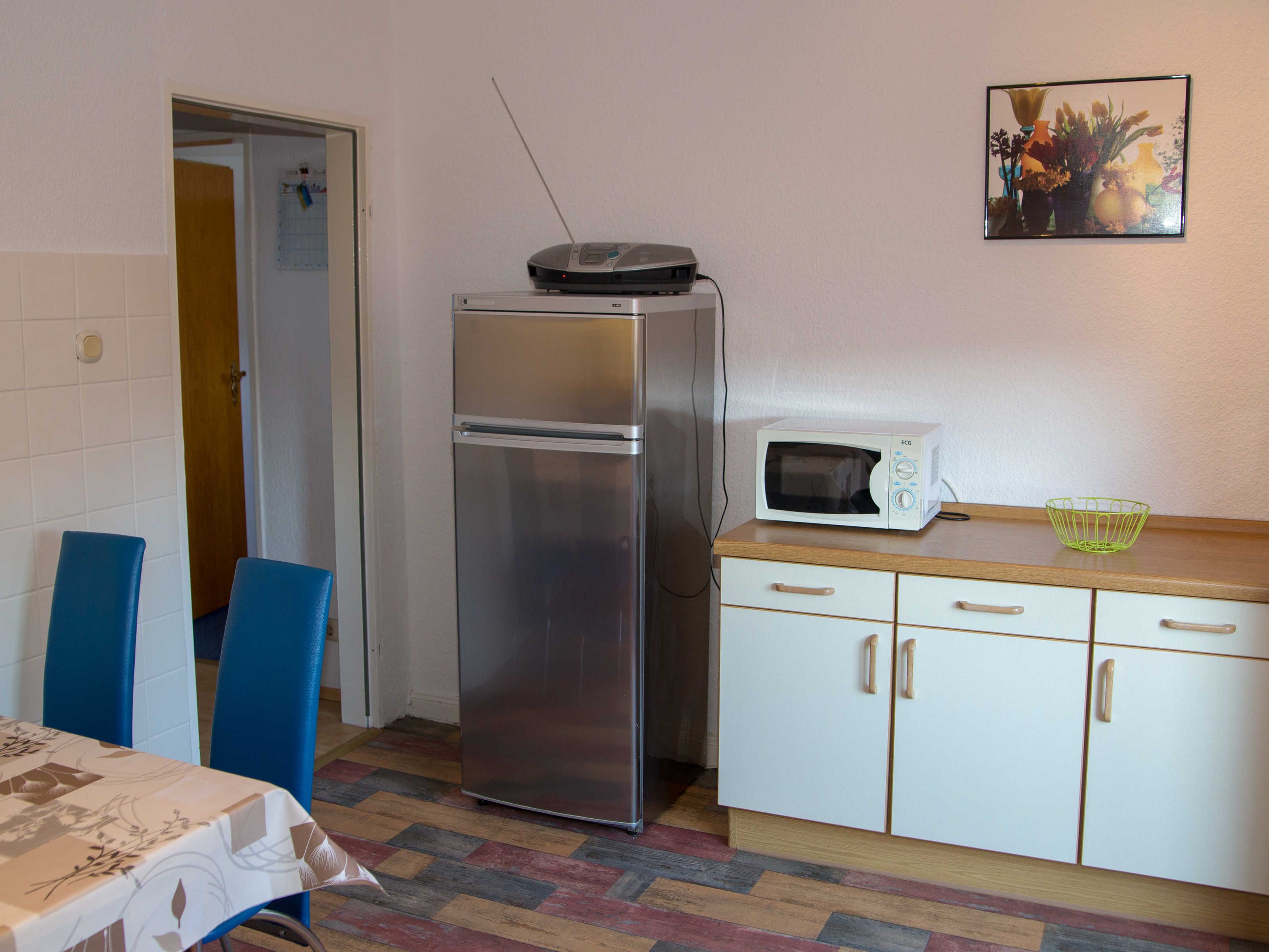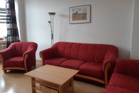 WLAN, ein Wohnzimmer mit bequemen Sofas, eine Wohnküche mit Balkon, ein Tageslichtbad mit Dusche, zwei Schlafzimmer bieten gerade Firmenmitarbeitern eine gute Unterkunft. Eine Waschmaschine mit gespannten Wäscheleinen befindet sich im Keller und darf gerne mitbenutzt werden. Auch Fahrradurlauber sind willkommen. Die Fahrräder können sicher angeschlossen werden.