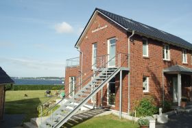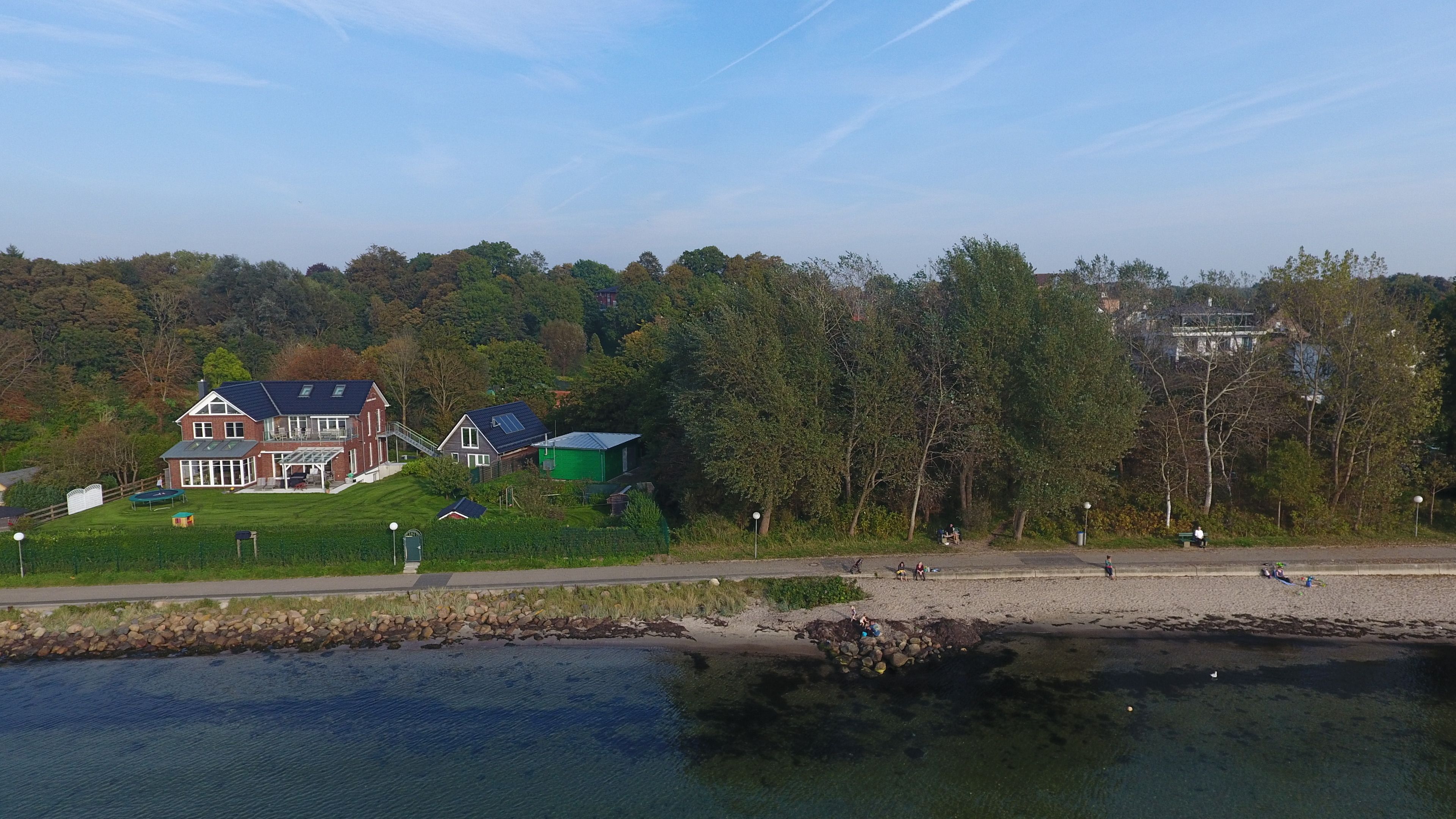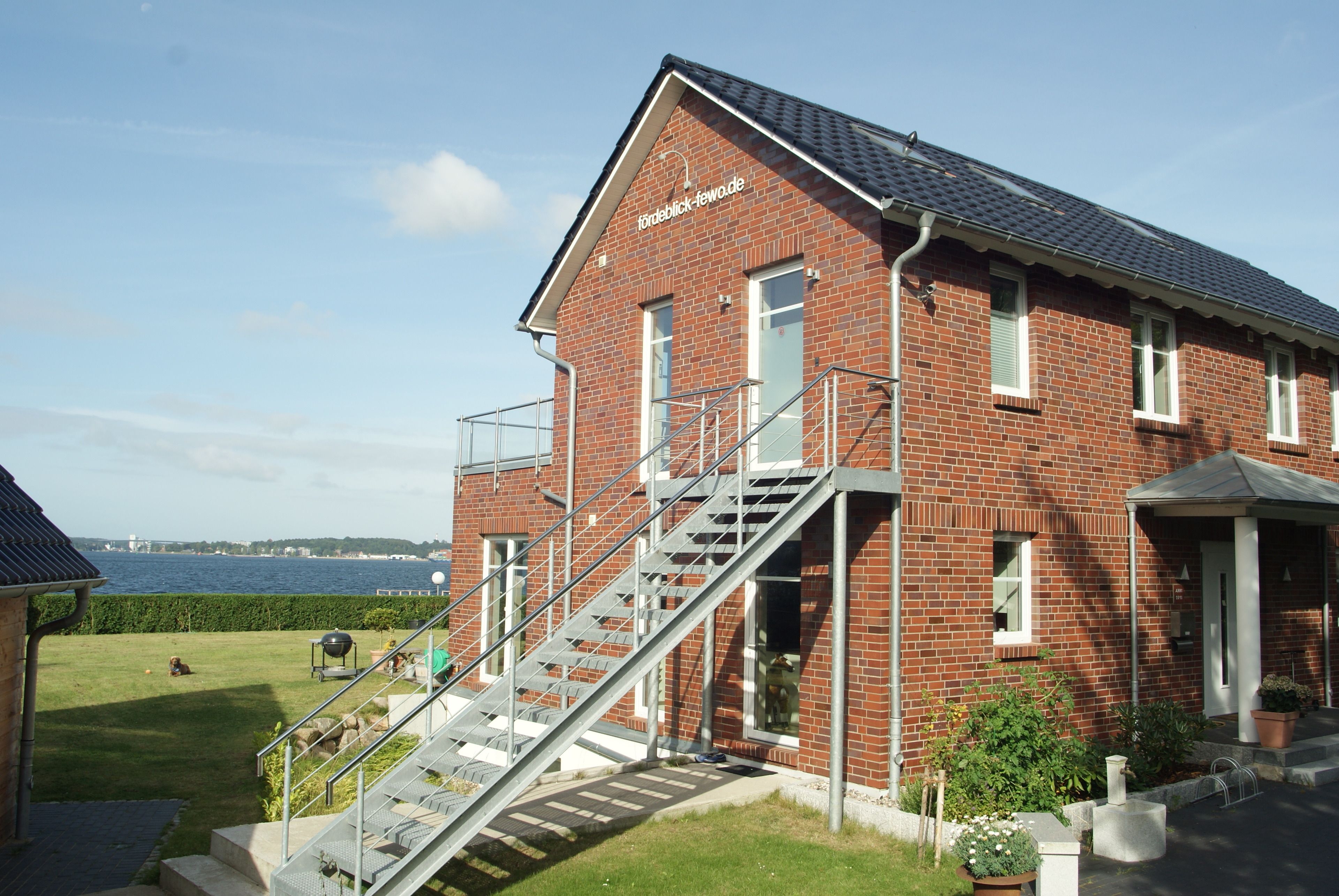 Die in 2010 erstelle Ferienwohnung erfüllt höchste Ansprüche: nur 20 m von der Wasserlinie entfernt und nur durch einen ruhigen Fußweg vom Ufer entfernt, bietet die Wohnung unverbaubaren Fördeblick mit großer Dachterrasse.