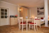 Die große 3-Zimmer-Ferienwohnung in der Villa Warnemünde befindet sich im gesamten 1. OG mit ca. 100 qm für bis zu 6 Personen mit 3 Duschbädern, einer Badewanne, 2 Pantry-Küchen, 2 TV´s und Radio. Die Ferienwohnung mit 3 seperaten Schlafräumen hat eine große Terrasse mit Blick auf die Ostsee und die Hafeneinfahrt.