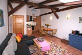 - Wohnzimmer mit integrierter moderner Küche - Backofen, Geschirrspülmaschine,