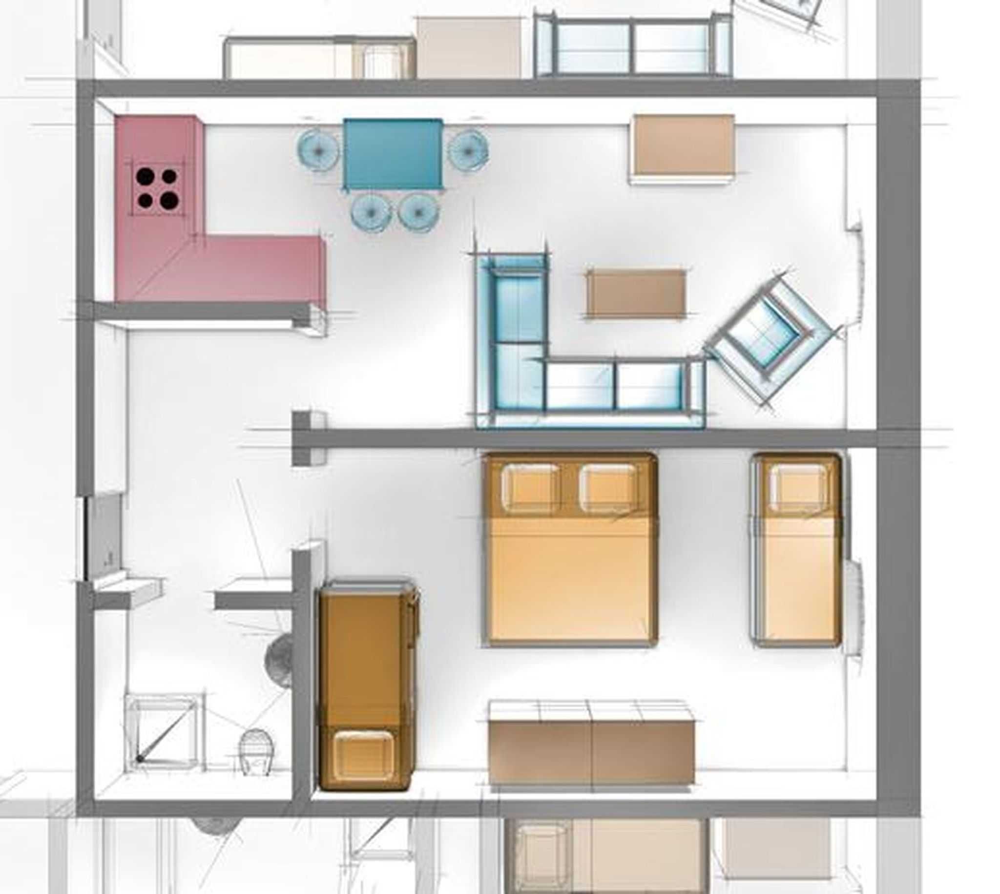 - 1 Schlafzimmer (20qm) mit einem Doppelbett, Etagenbett und Einzelbett