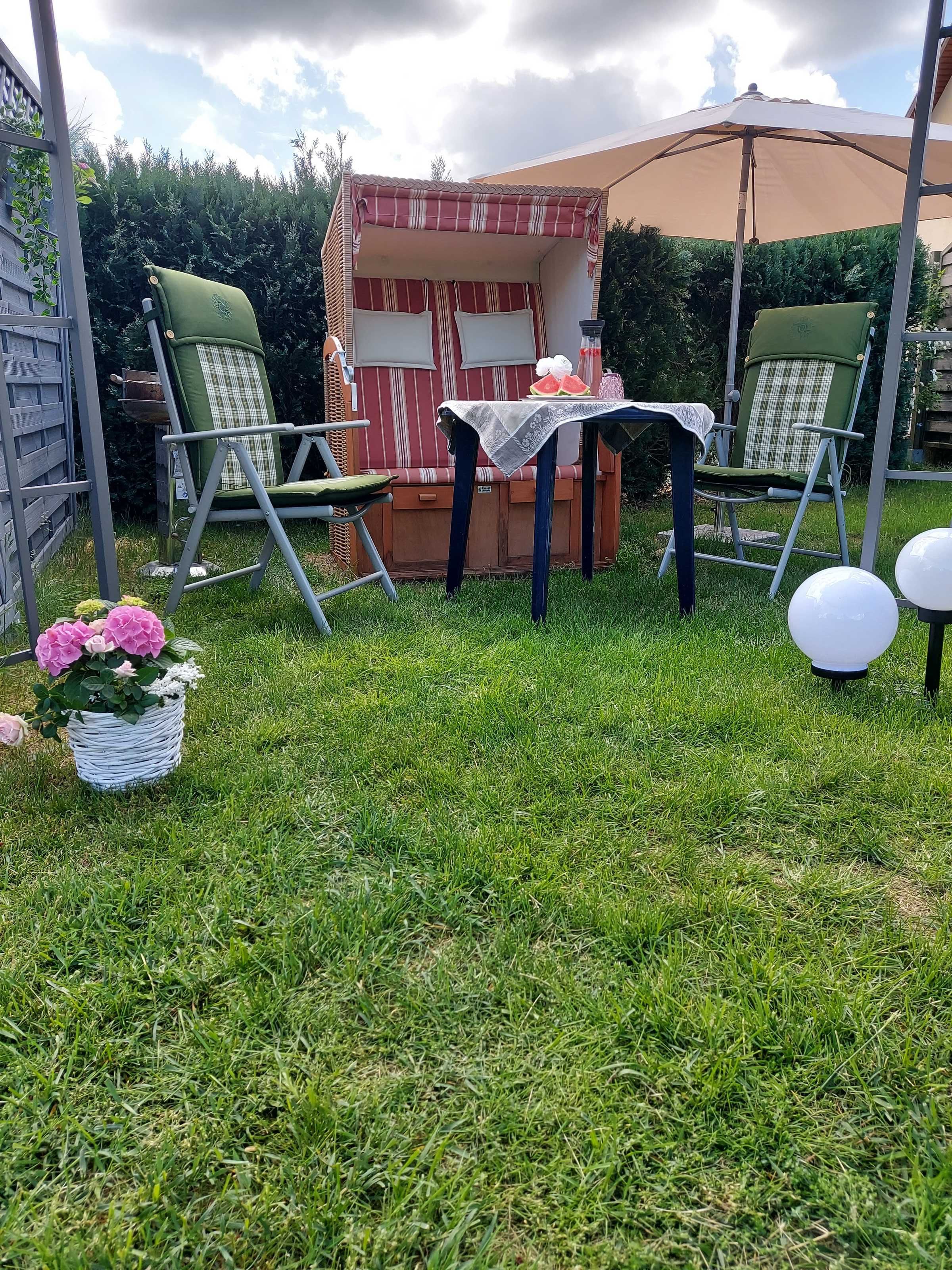 Zur Unterkunft gehört ein Parkplatz direkt am Haus. Im gepflegten Garten können Sie auf einer gemütlichen Sitzgelegenheit oder im Strandkorb entspannen. Eine Grillmöglichkeit steht ebenfalls zur Verfügung.