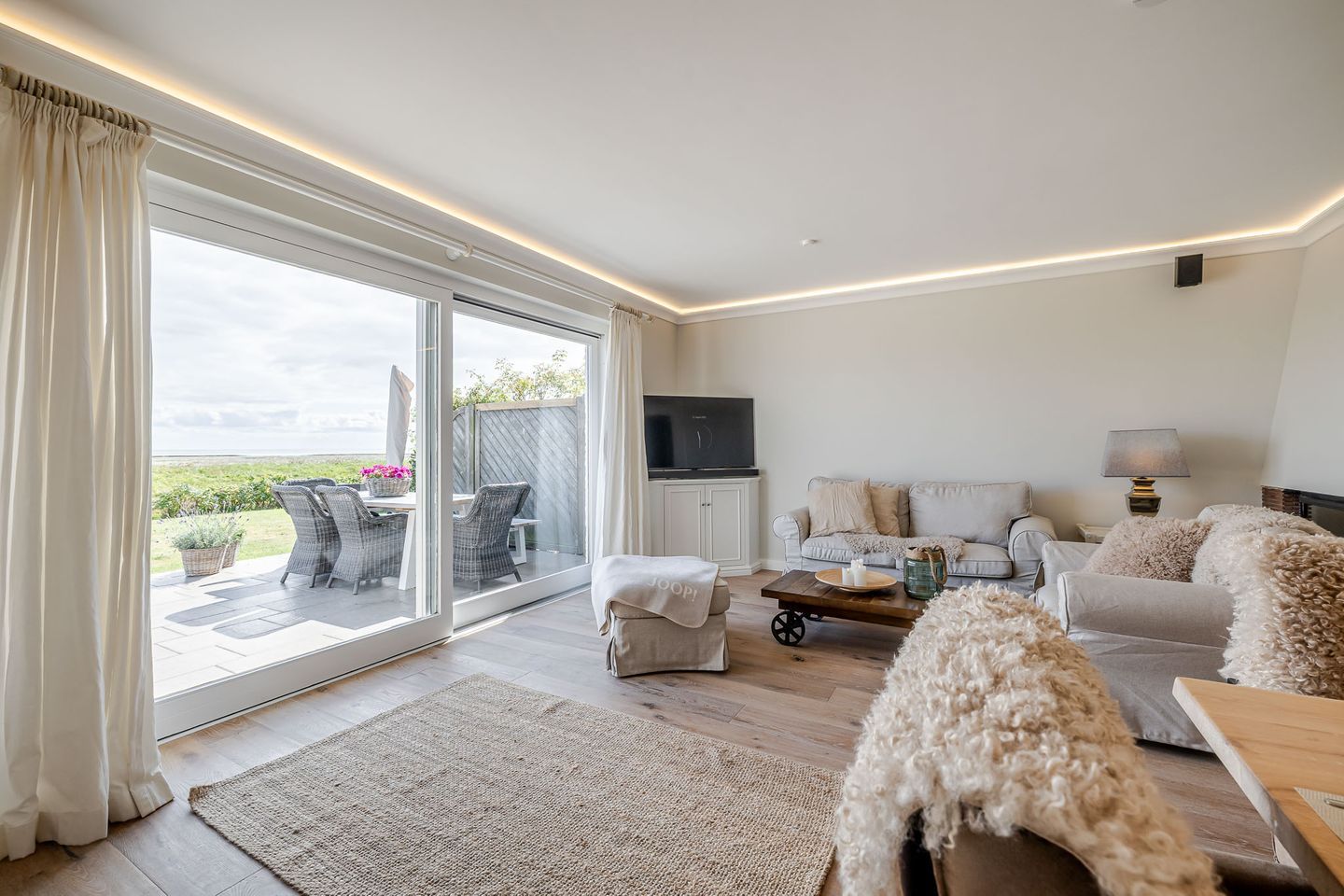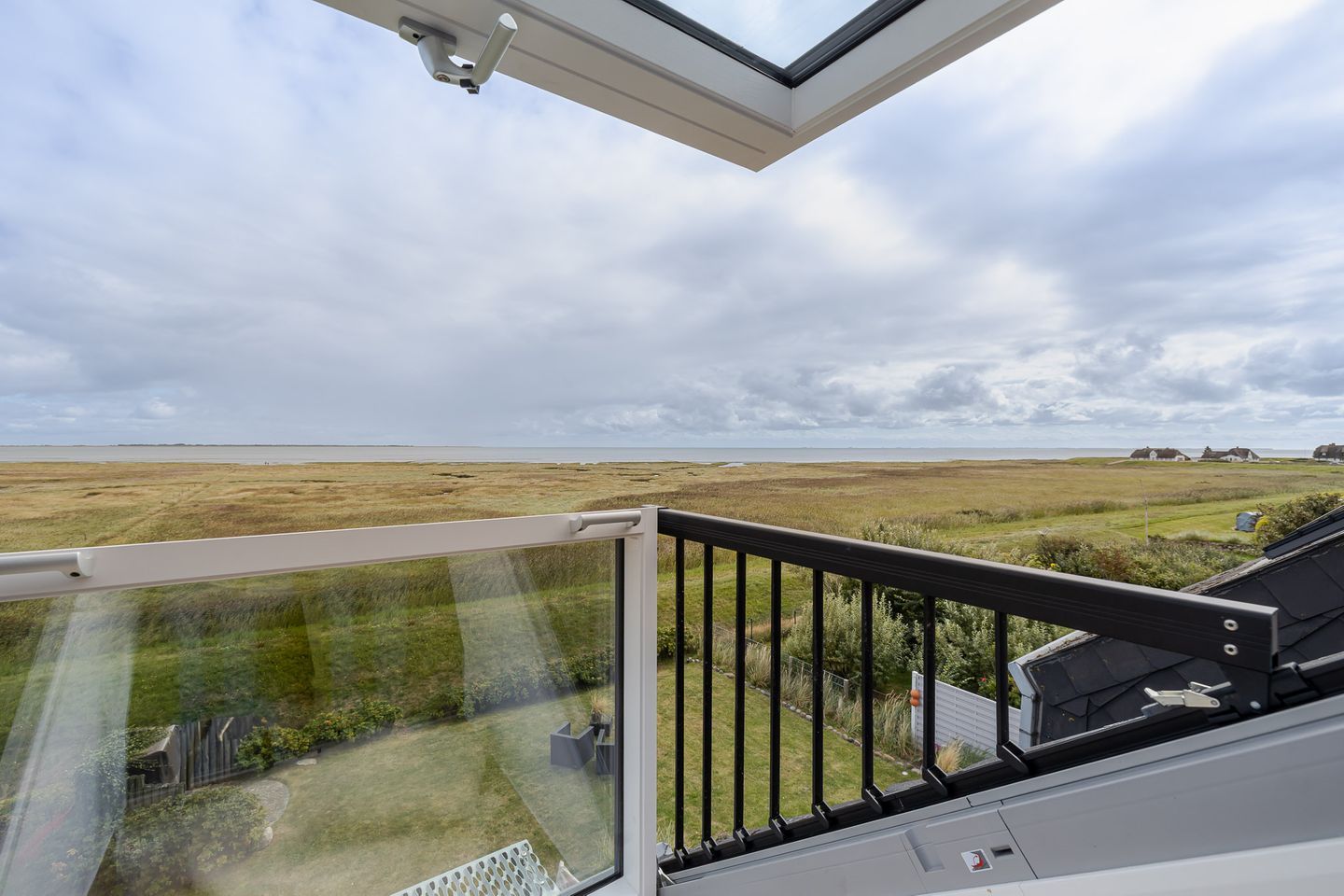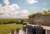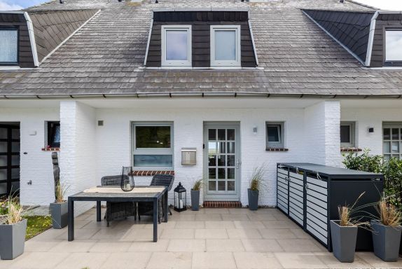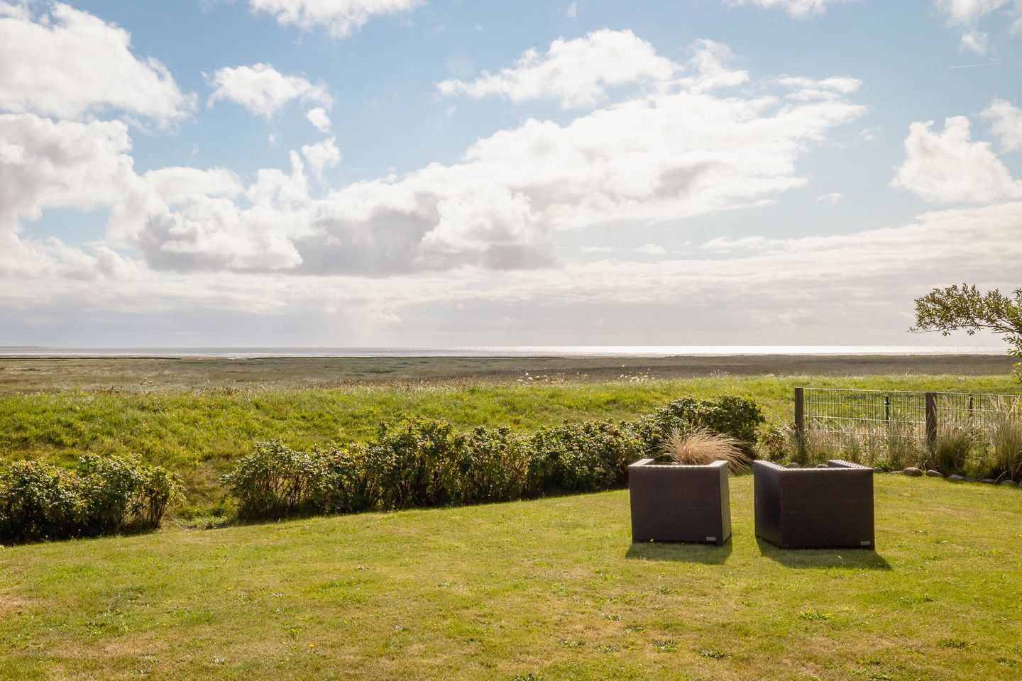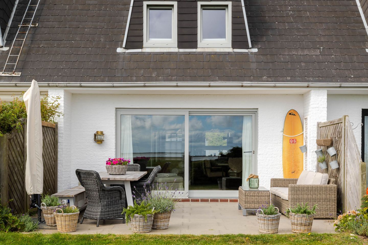 Im Außenbereich lädt der gepflegte Garten mit Gartenmöbeln, Sonnenschirm und eigenem Strandkorb zum Verweilen ein. Die großzügige Terrasse bietet Ihnen einen unvergleichlichen 180°- Blick auf das Wattenmeer, sodass Sie die maritime Atmosphäre Sylts direkt von Ihrem Feriendomizil aus genießen können. Auch vor dem Haus wartet eine angenehme Sitzgelegenheit auf Sie.