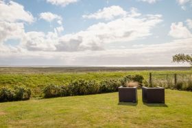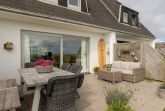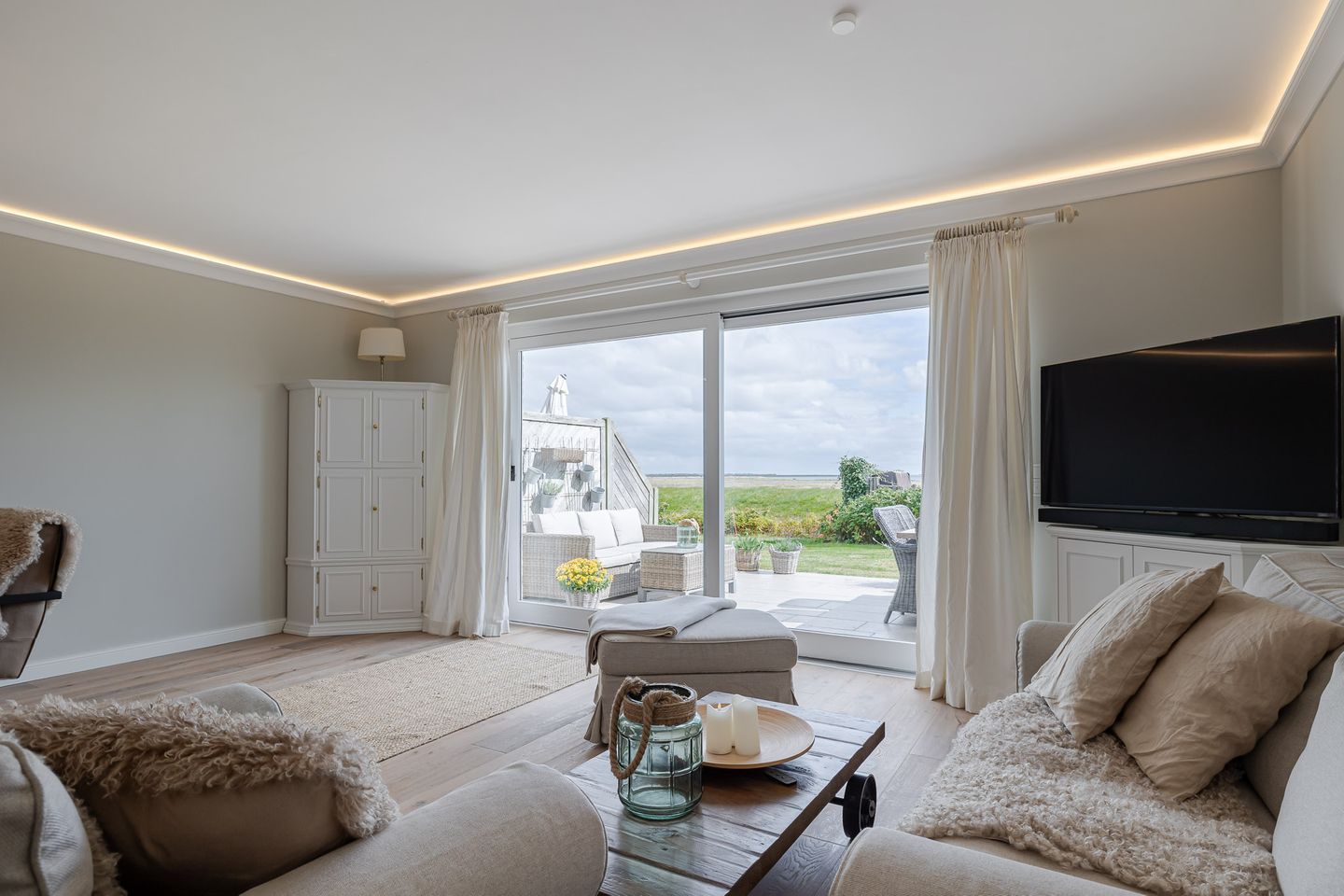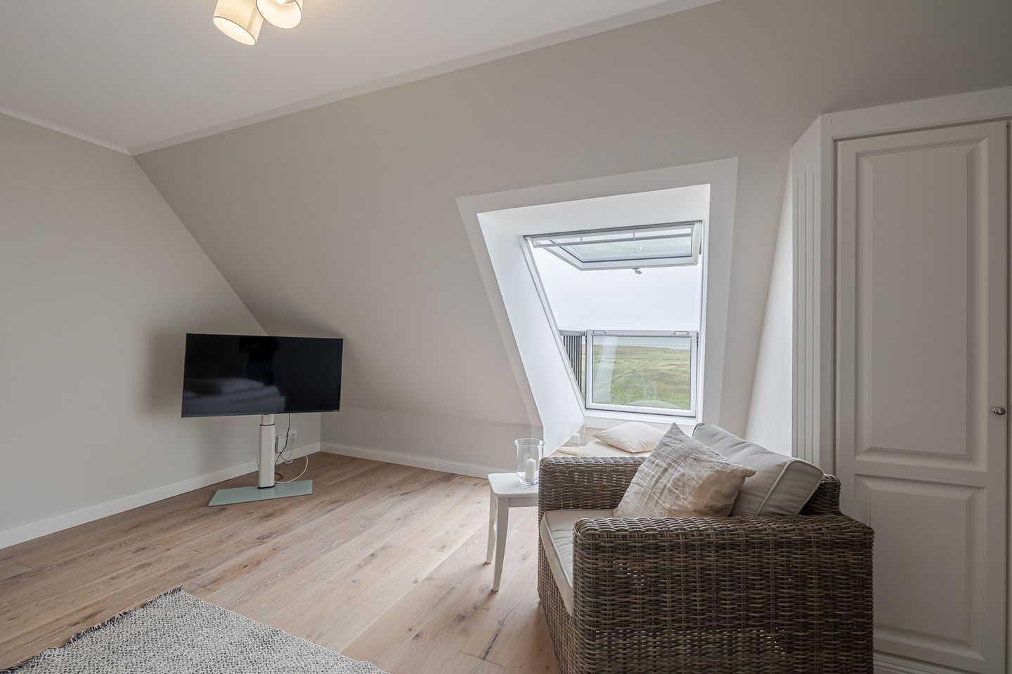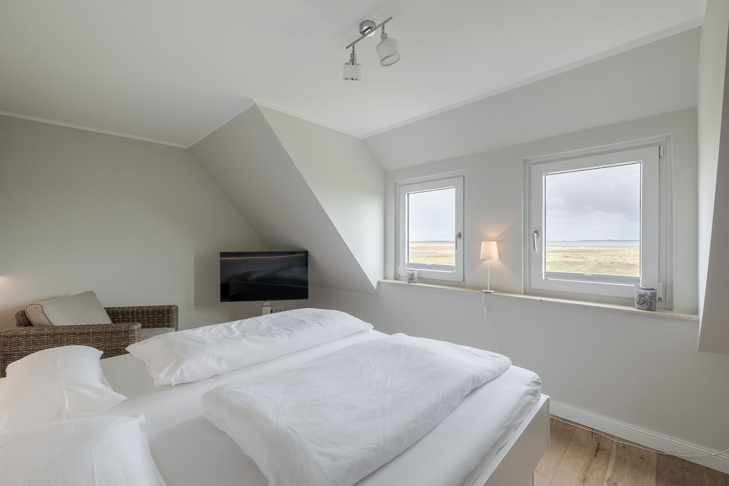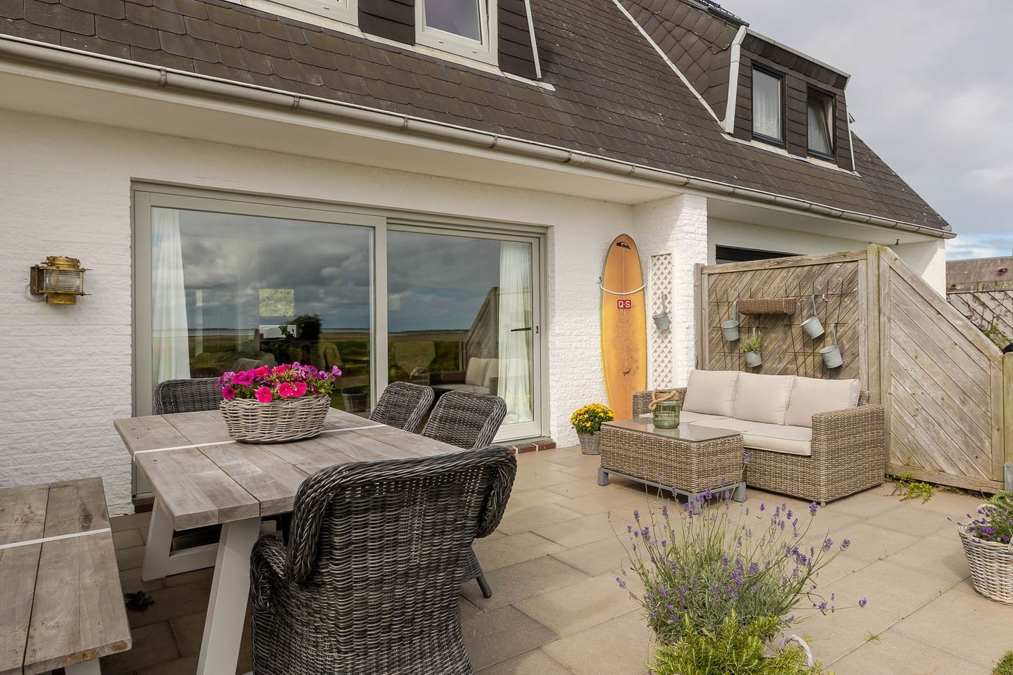 Im Außenbereich lädt der gepflegte Garten mit Gartenmöbeln, Sonnenschirm und eigenem Strandkorb zum Verweilen ein. Die großzügige Terrasse bietet Ihnen einen unvergleichlichen 180°- Blick auf das Wattenmeer, sodass Sie die maritime Atmosphäre Sylts direkt von Ihrem Feriendomizil aus genießen können. Auch vor dem Haus wartet eine angenehme Sitzgelegenheit auf Sie.