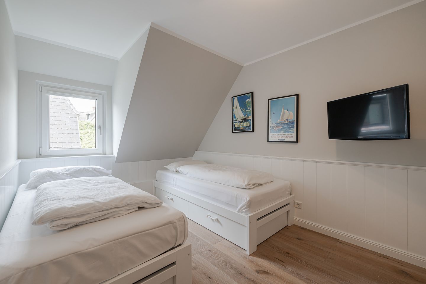 Im Raanhüs finden Sie drei Schlafzimmer, die alle mit Parkettboden ausgestattet sind und damit eine warme sowie stilvolle Atmosphäre vermitteln. Zwei modern ausgestattete Badezimmer sorgen für Komfort und ermöglichen ein reibungsloses Miteinander auch bei mehreren Gästen. In beiden Bädern stehen Ihnen jeweils eine Dusche, Waschbecken, WC, Spiegel, Haartrockner sowie Fenster für einen angenehmen Tageslichteinfall zur Verfügung. Zudem verfügt das Haus über eine eigene Sauna, die zum Entspannen nach erlebnisreichen Tagen auf der Insel Sylt einlädt.