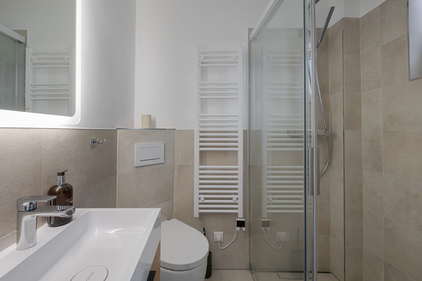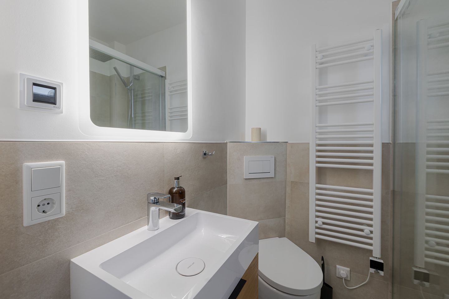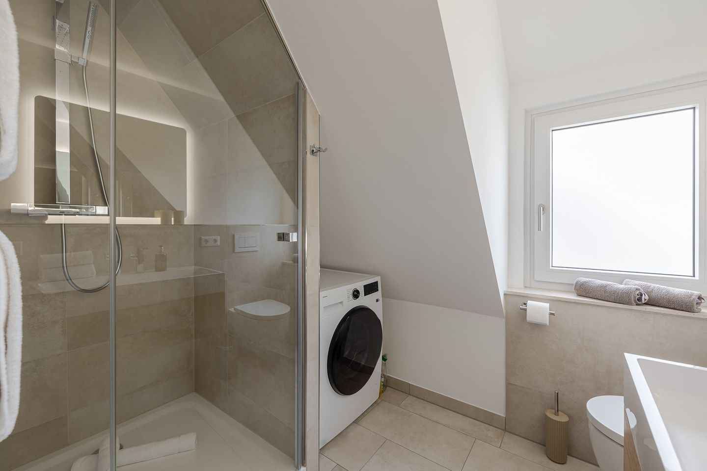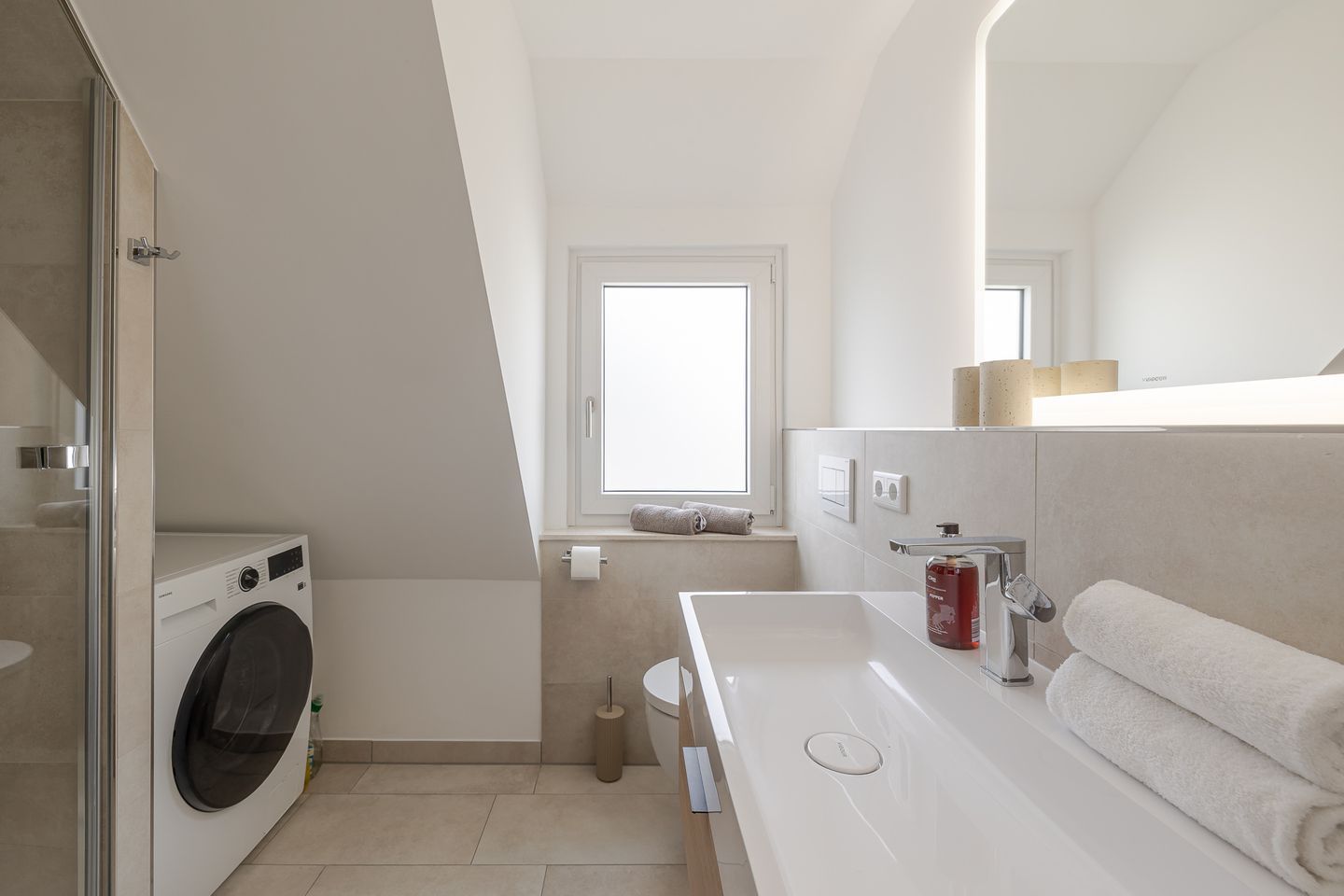 Zu den praktischen Ausstattungsmerkmalen gehören außerdem eine Waschmaschine und ein Trockner, Bügelbrett, Bügeleisen, Staubsauger und ein Wäscheständer, sodass auch längere Aufenthalte problemlos möglich sind. Ein privater Parkplatz direkt am Haus sowie eine Garderobe, ein Schuhschrank und ein Ganzkörperspiegel bieten weitere Annehmlichkeiten.