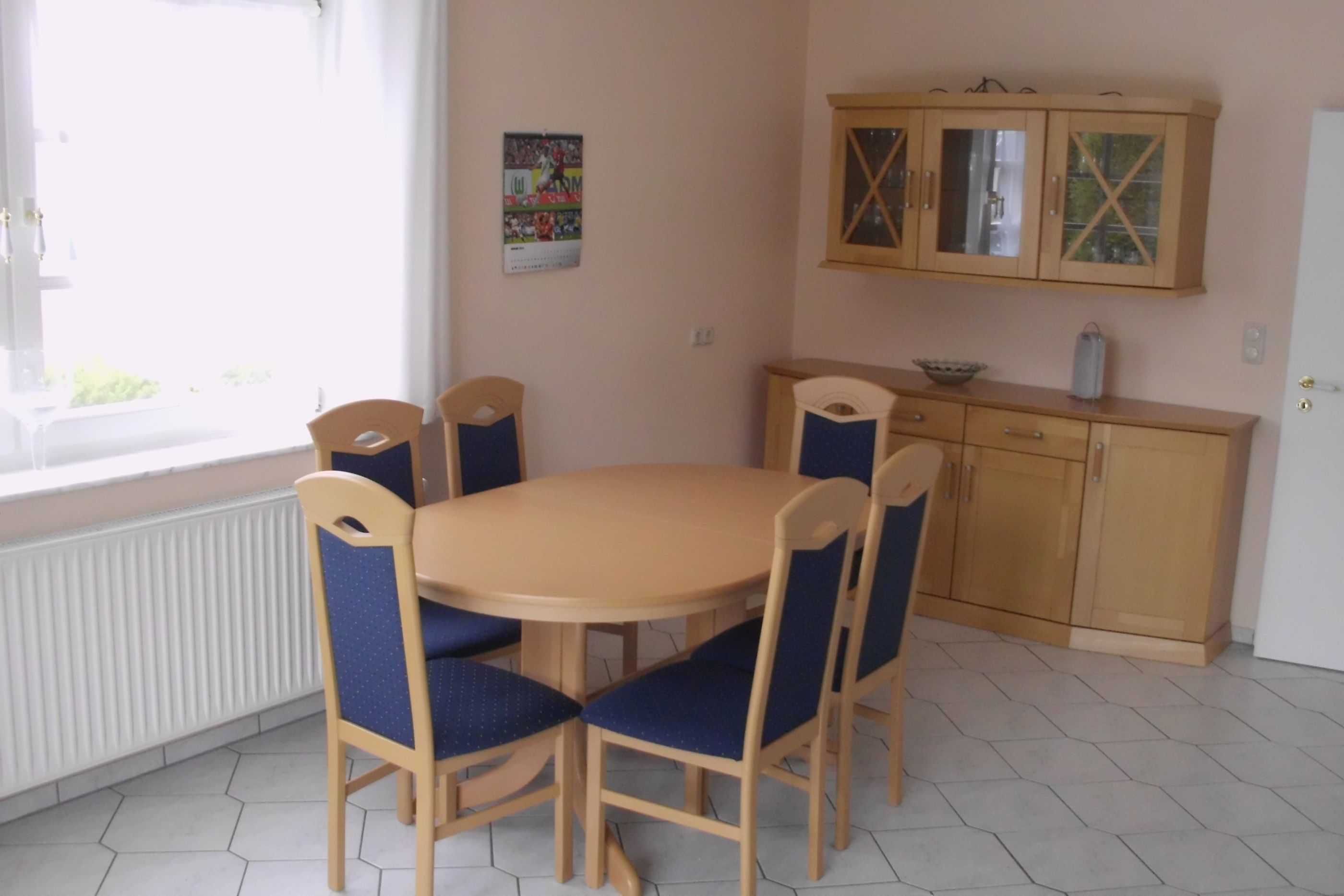 Erdgeschoß: Einbauküche mit Geschirrspüler, Kühlschrank, Mikrowelle, Kaffeemaschine, Kaffeepadmaschine, Toaster, Wasserkocher, etc. Wohn-/Esszimmer: Ledersofa, großer Flachbildfernseher, DVD-Player, Musikanlage mit CD-Player, Esstisch mit 6 Stühlen, Sideboard. Abstellraum mit Gefrierschrank. Gäste-WC. 1. Etage: 1 Schlafzimmer mit Doppelbett und Flachbildfernseher, Einbaukleiderschrank, Sideboard (alles in weiß). 1 Schlafzimmer mit 2 einzelnen Betten (keine Etagenbetten) und Einbauschrank (alles in weiß), Babywiege+Babybadewanne. Badezimmer: Waschmaschine, Trockner, Dusche + WC und Föhn, Wickelauflage. Dachgeschoß: 1 Schlafzimmer mit Doppelbett und Flachbildfernseher (in Kiefer vertäfelt und Dachschrägen), Einbauschrank. In der gesamten Doppelhaushälfte überwiegend massiv/hochwertige Möbel, Lampen, Fenster und Türen. Terrasse mit elektrischer Markise. Nichtraucherwohnung (Rauchen bitte nur draußen auf der Terrasse), Haustier erlaubt (bei mehr als 1 Haustier nur nach Rücksprache mit dem Vermieter buchbar). WLAN