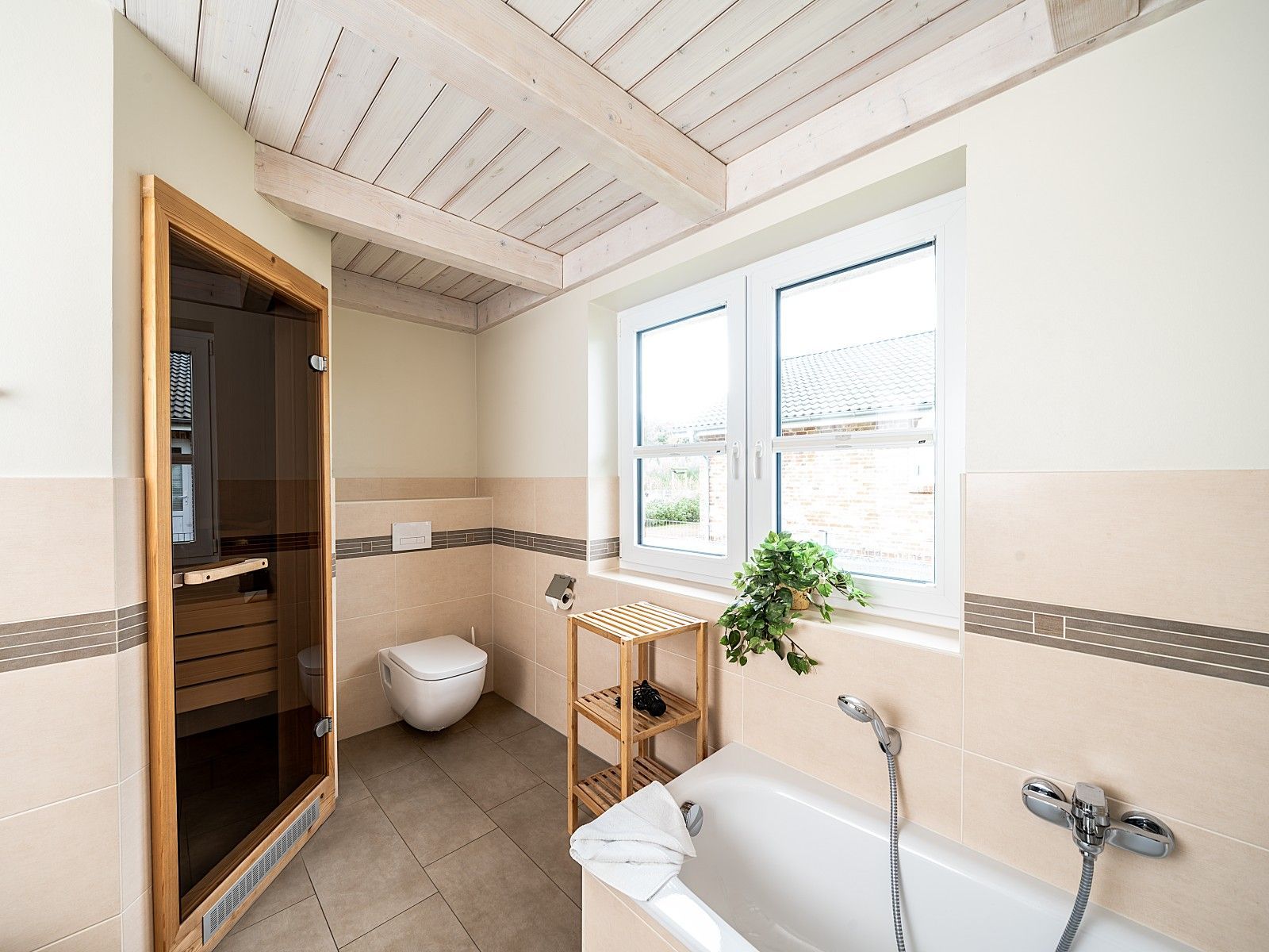 Für behagliche Wärme sorgen ein Kaminofen und eine private Sauna – ideal nach einem Spaziergang am Deich. Ein Breitbandanschluss mit 50 Mbit/s im Download und 25 Mbit/s im Upload garantiert zudem stabiles Internet, sodass auch im Urlaub komfortables Arbeiten oder Streamen möglich ist.