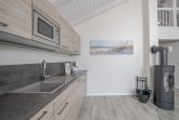 Ein saisonaler Strandkorb auf der Terrasse (ca. AprilSeptember) macht das Frühstück im Grünen zu einem besonderen Erlebnis. An kühleren Tagen sorgen Sauna und Kaminofen für wohlige Wärme nach einem Spaziergang am Deich.