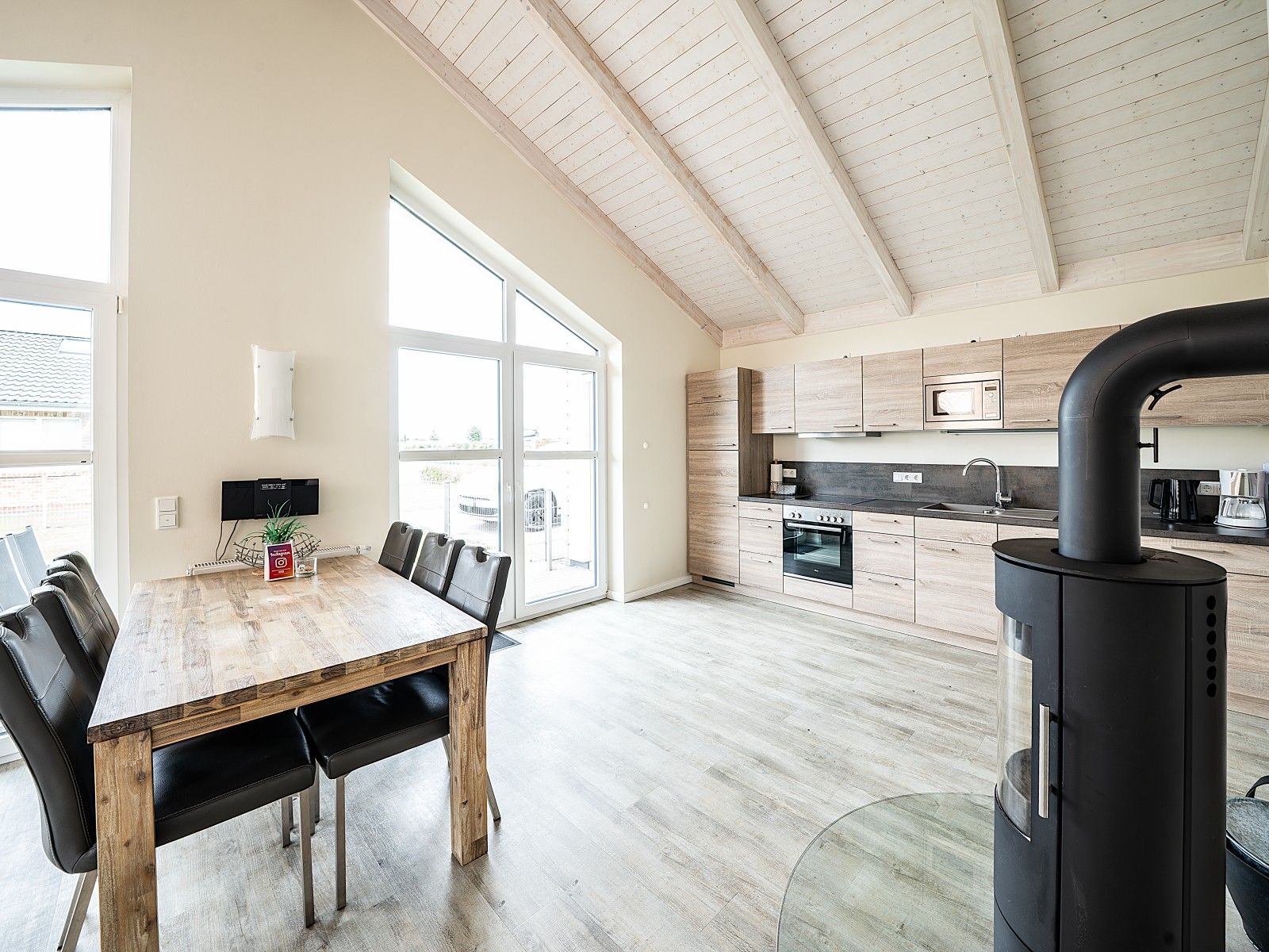 Dieses freistehende Ferienhaus bietet auf 80 m² Platz für bis zu vier Personen und ist die ideale Wahl für einen erholsamen Nordseeurlaub. Zwei komfortable Schlafzimmer, ein großzügiges Bad mit Dusche und Badewanne sowie ein heller Wohnbereich mit Kaminofen schaffen ein wohnliches Ambiente zum Wohlfühlen.