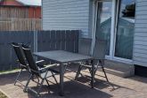 • Große Terrasse mit Tisch und Stühlen