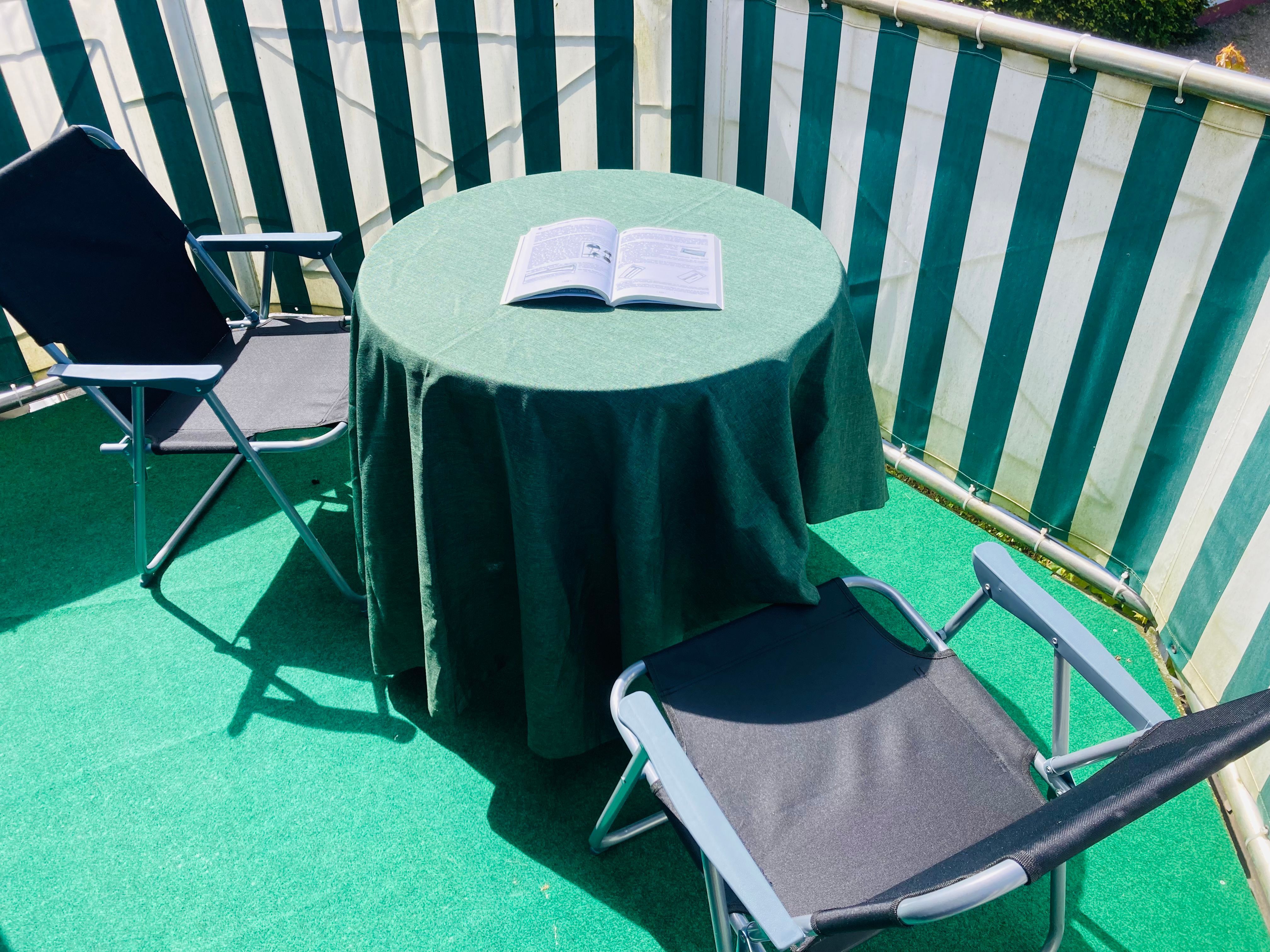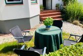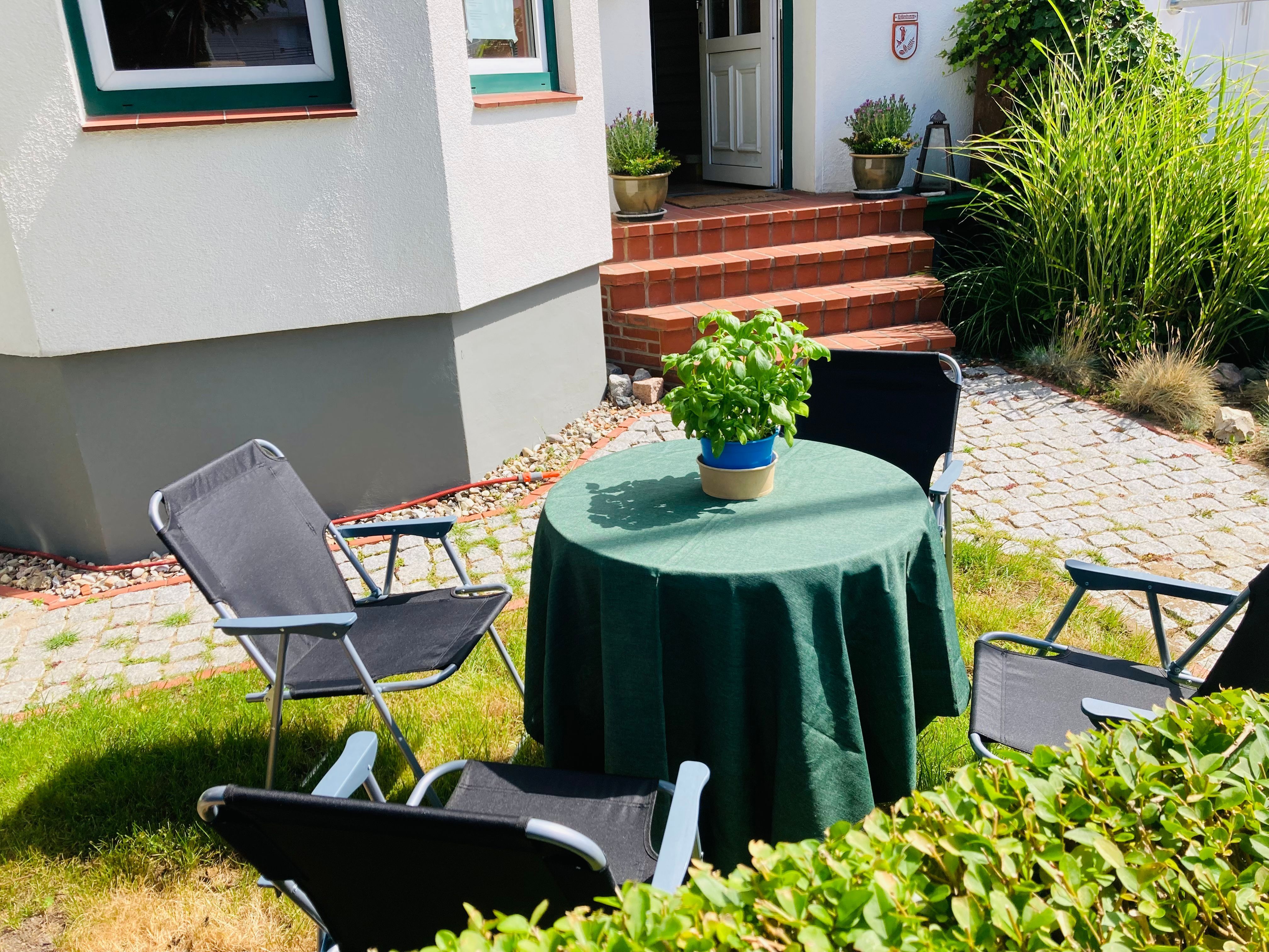 Vor dem Haus gibt es zusätzlich eine kleine Terrasse, die ebenso neu möbliert ist und zum Aufenthalt einlädt.