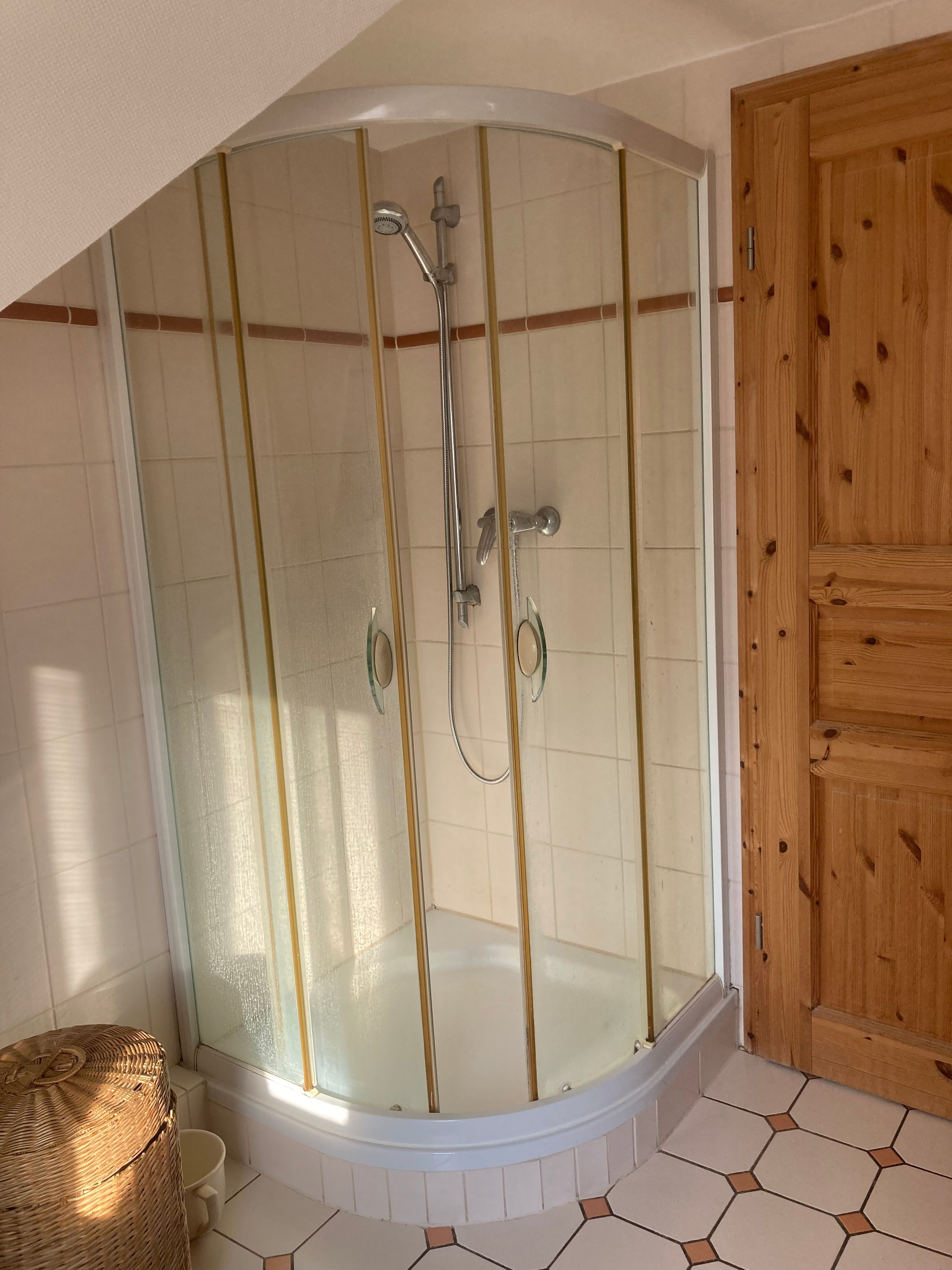 Die obere Etage ist aufgeteilt in 2 helle Schlafzimmer und ein Duschbad/WC.
