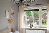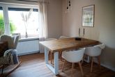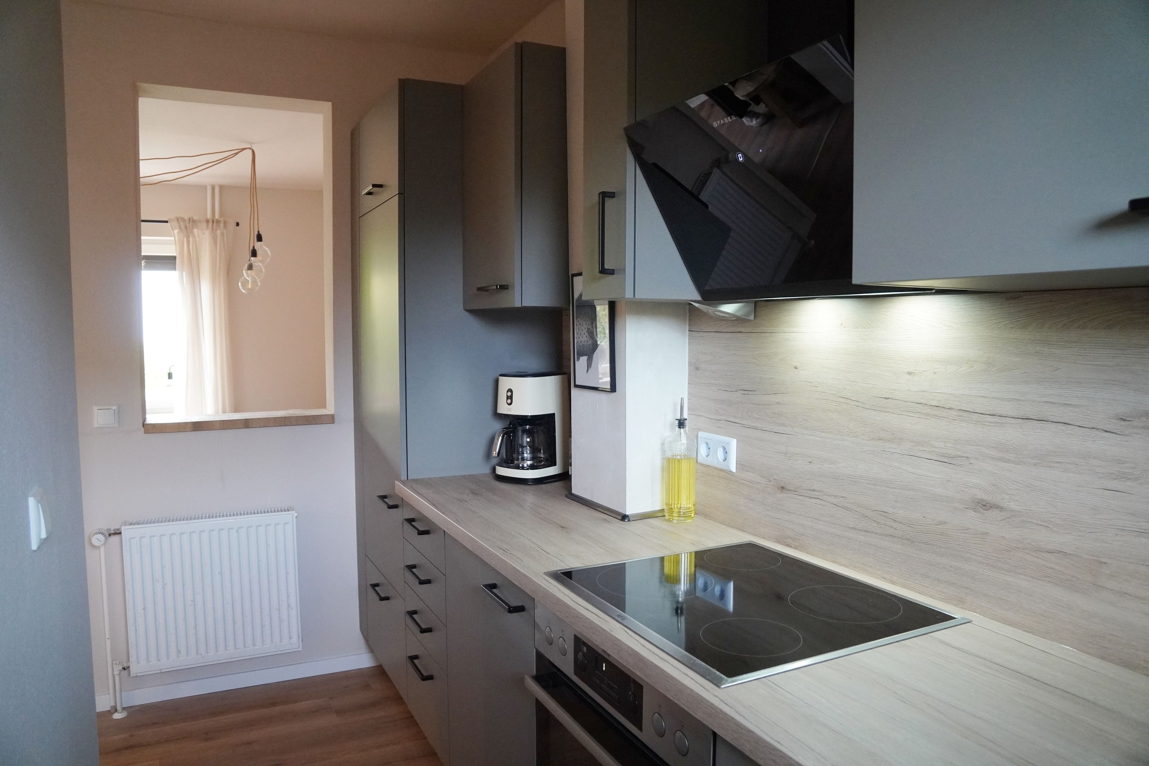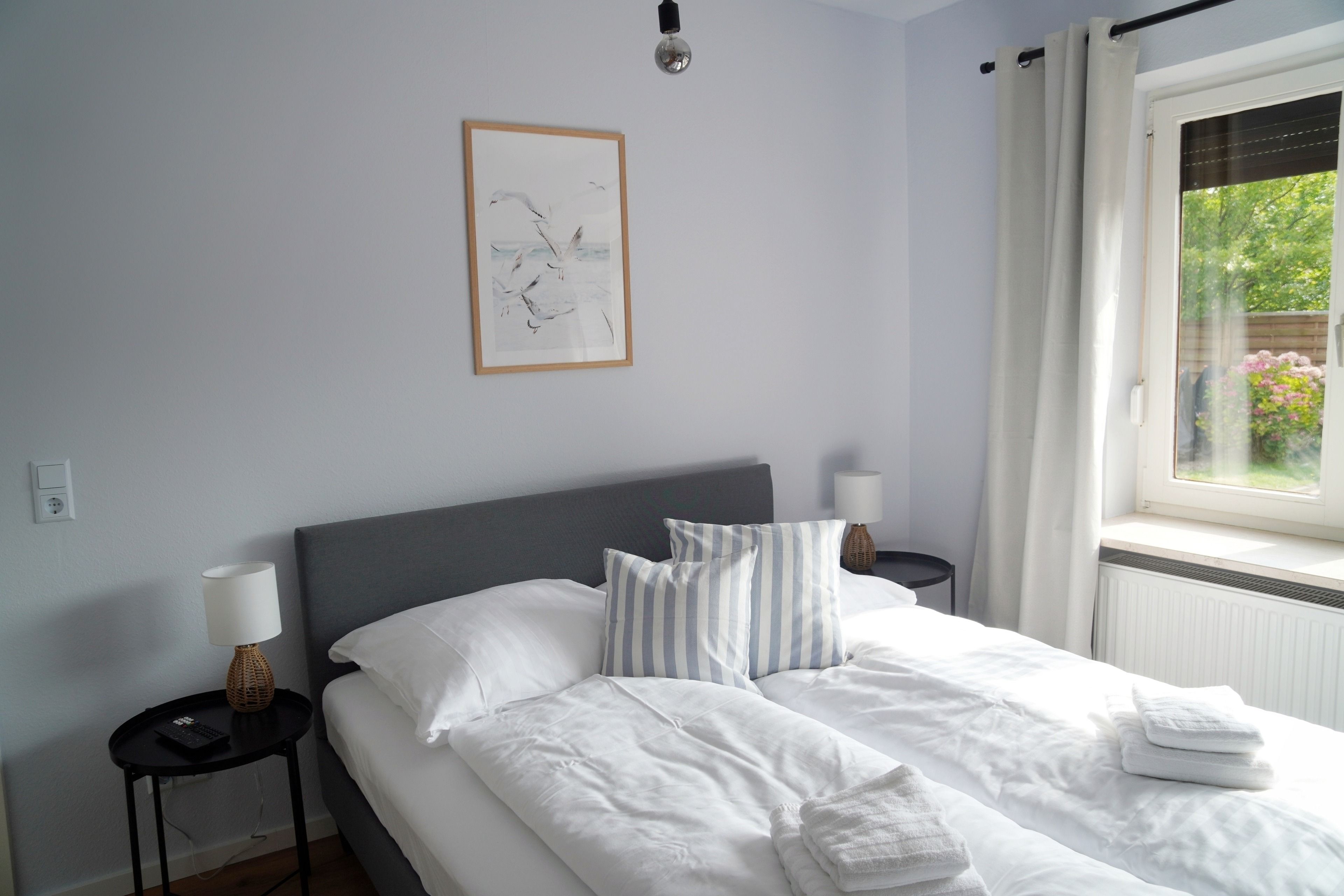 Zwei gemütliche Schlafzimmer bieten Platz für Familie oder Freunde. Die Einrichtung kombiniert warme Holztöne, Seefahrer-Details und Industrial-Elemente aus Metall. Die Küche ist komplett ausgestattet, das Bad modern gestaltet.
