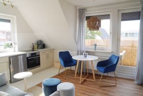 Genieße Nordsee-Flair pur. Dieses helle Apartment im modernen Blue Coastal Chic liegt nur wenige Gehminuten vom Zentrum und Strand entfernt.