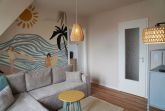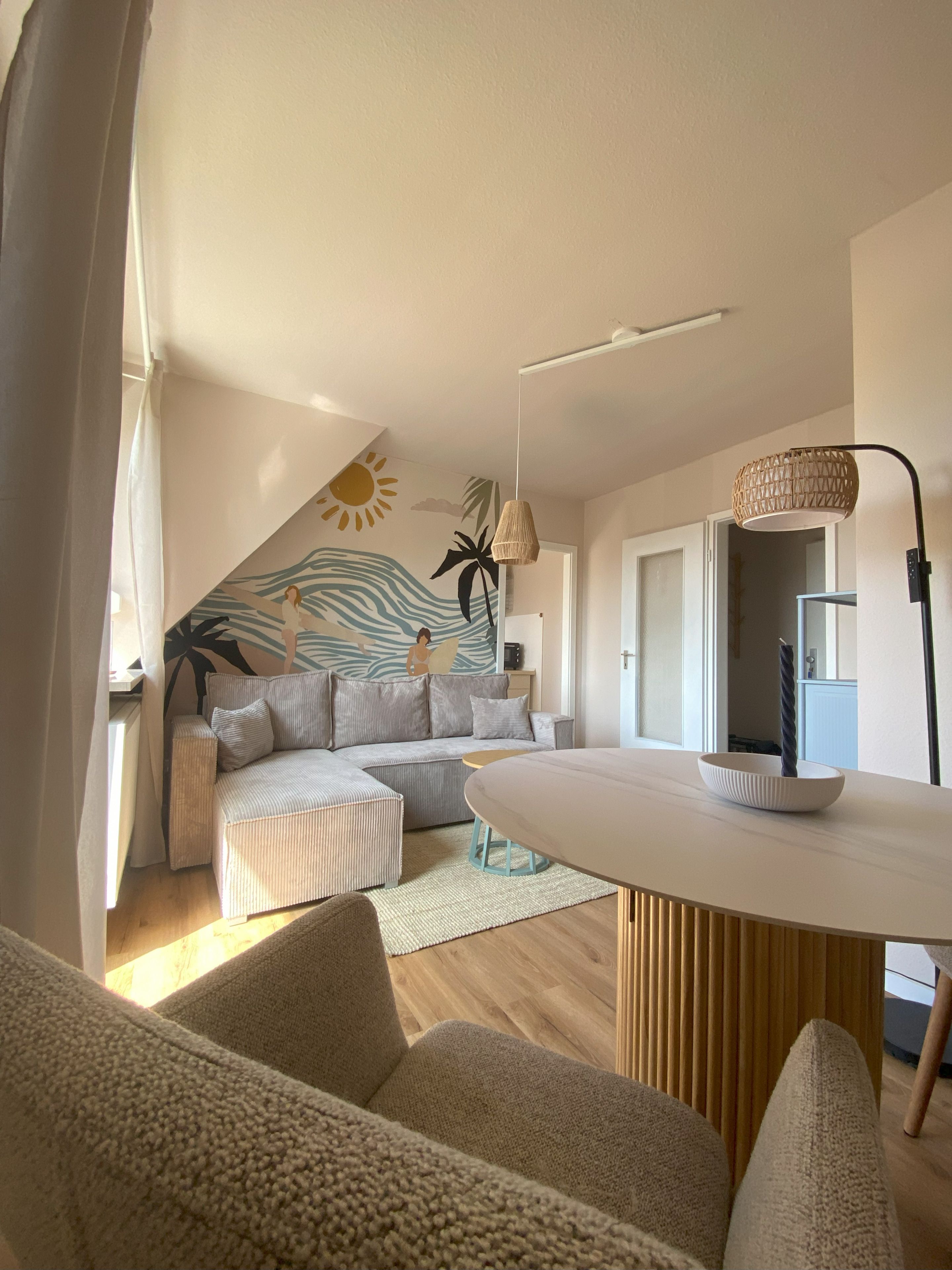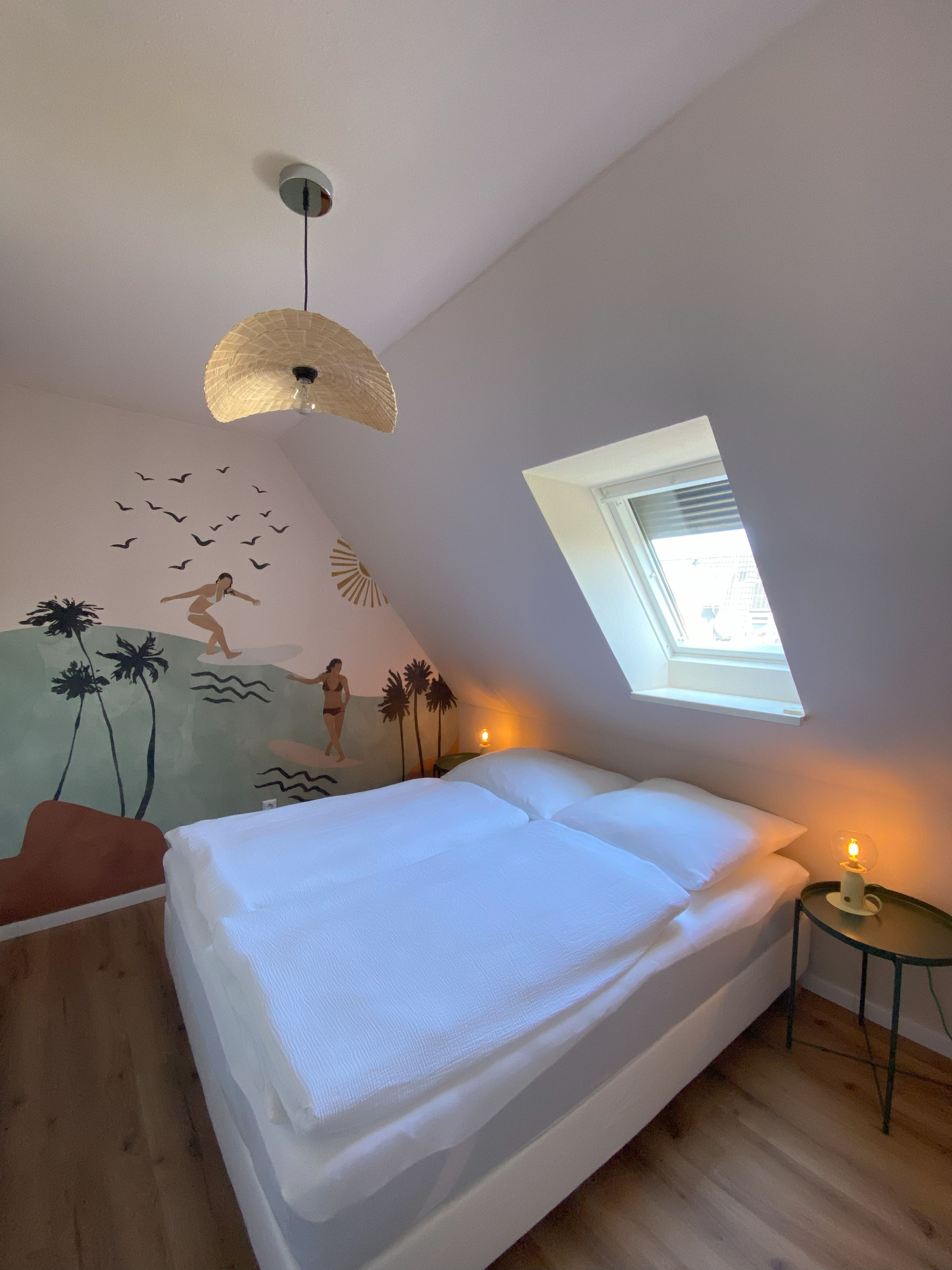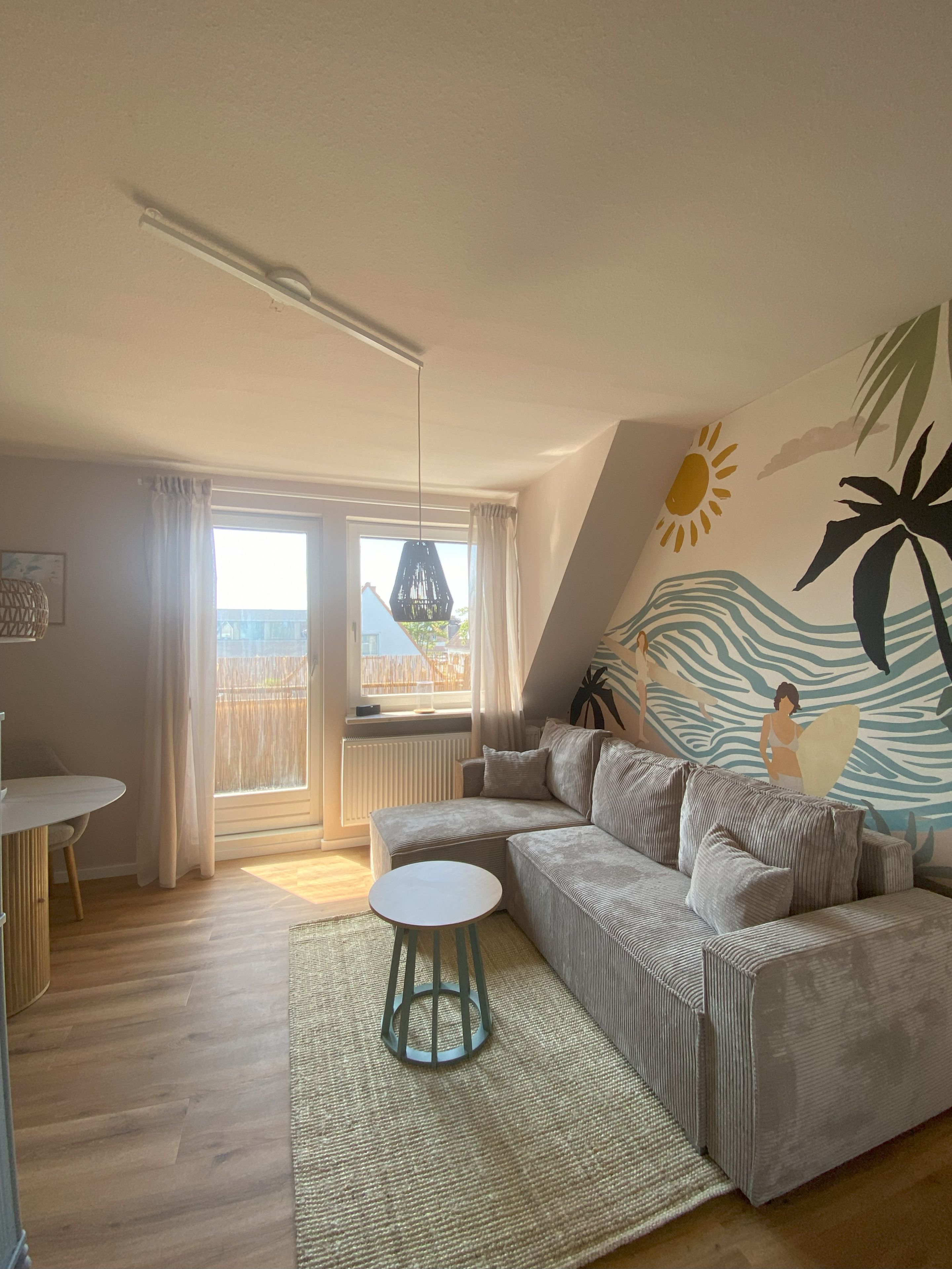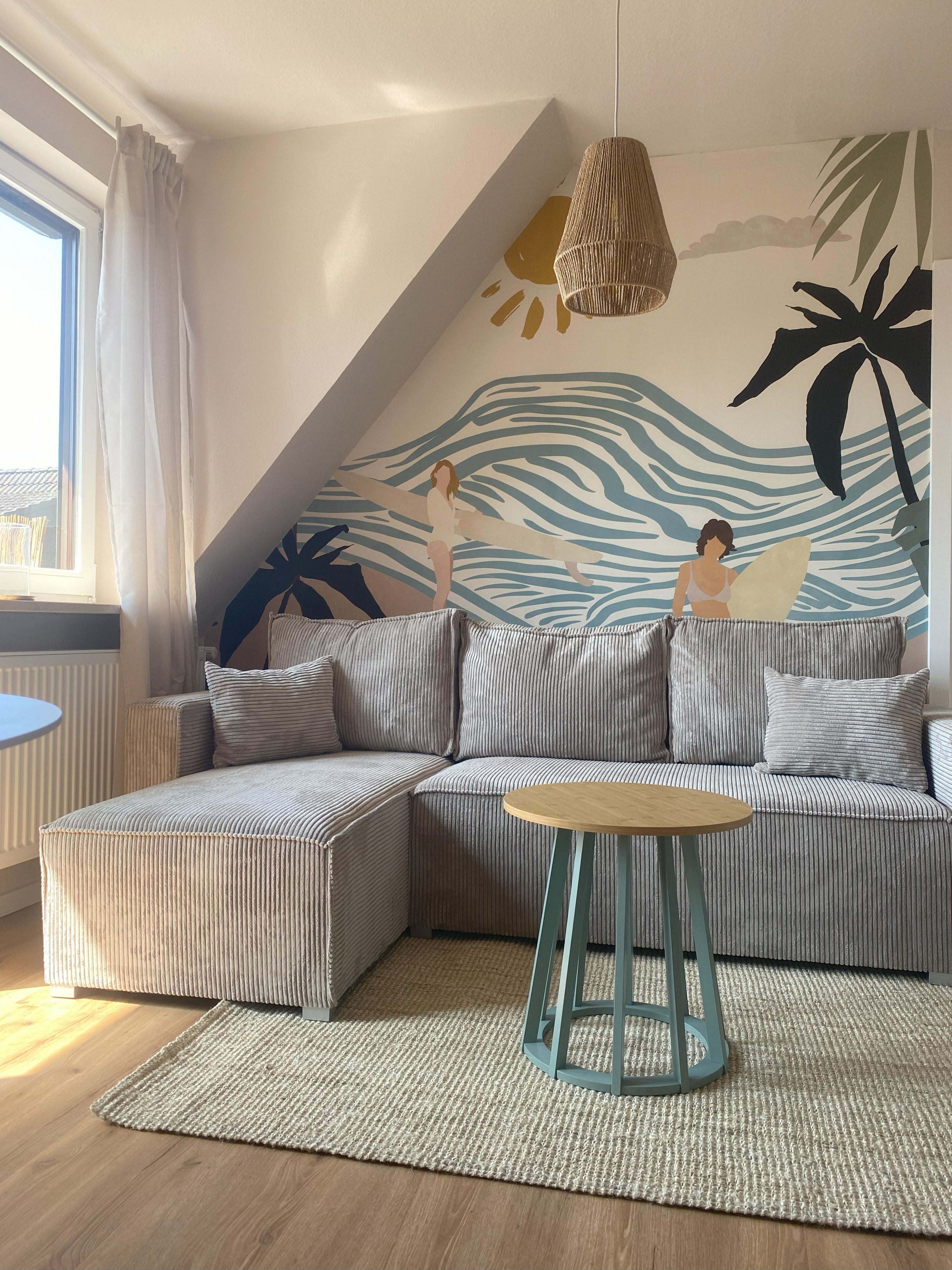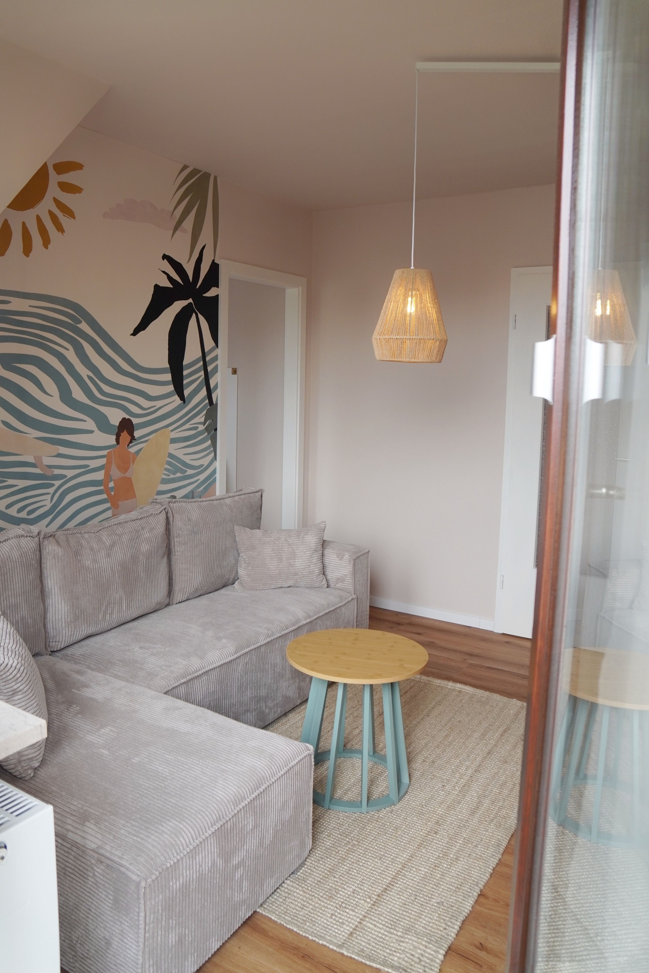 Fühl dich wie zu Hause in unserer gemütlichen Ferienwohnung Butze 6 im hellen Coastal-Boho-Stil.