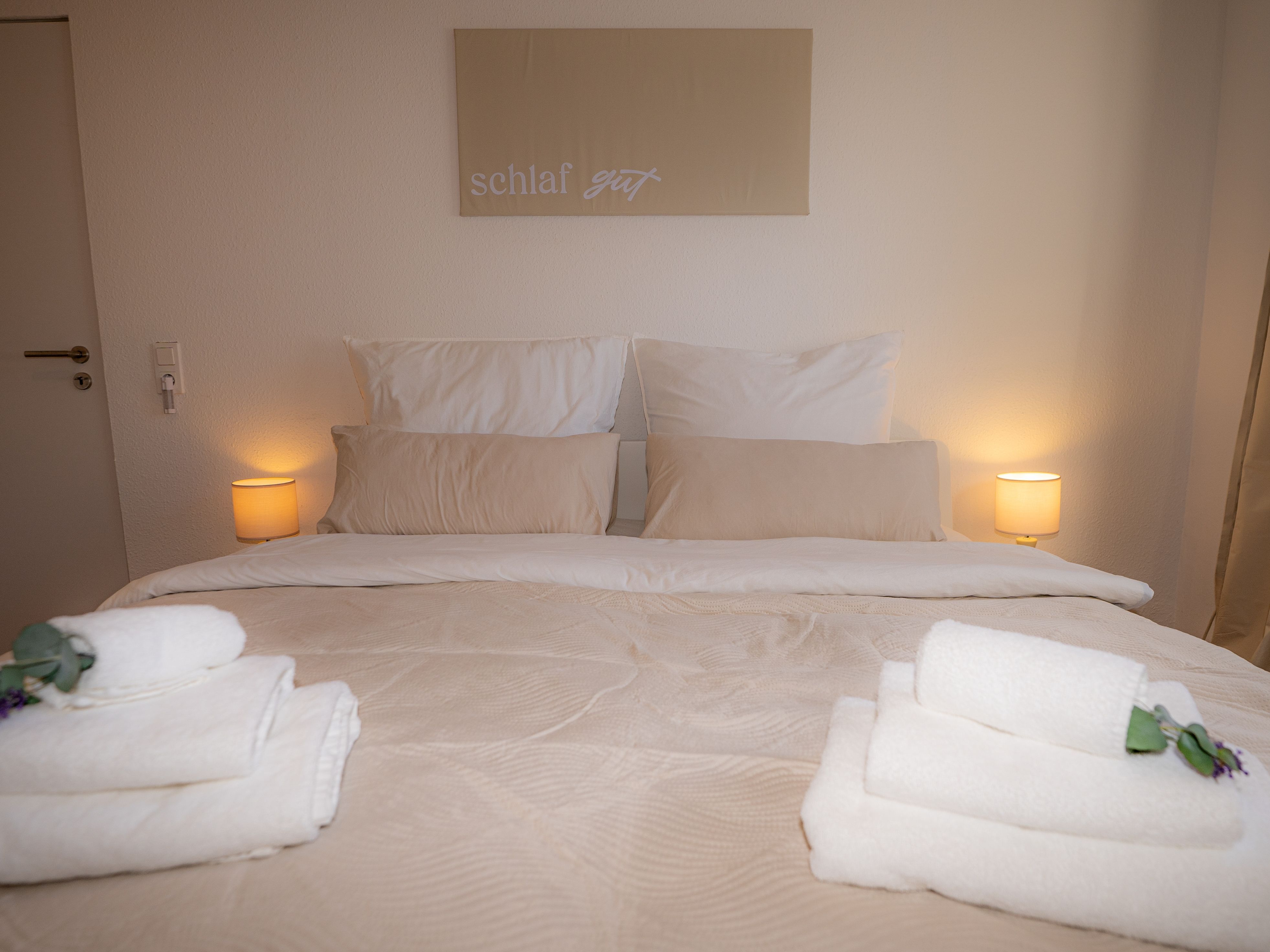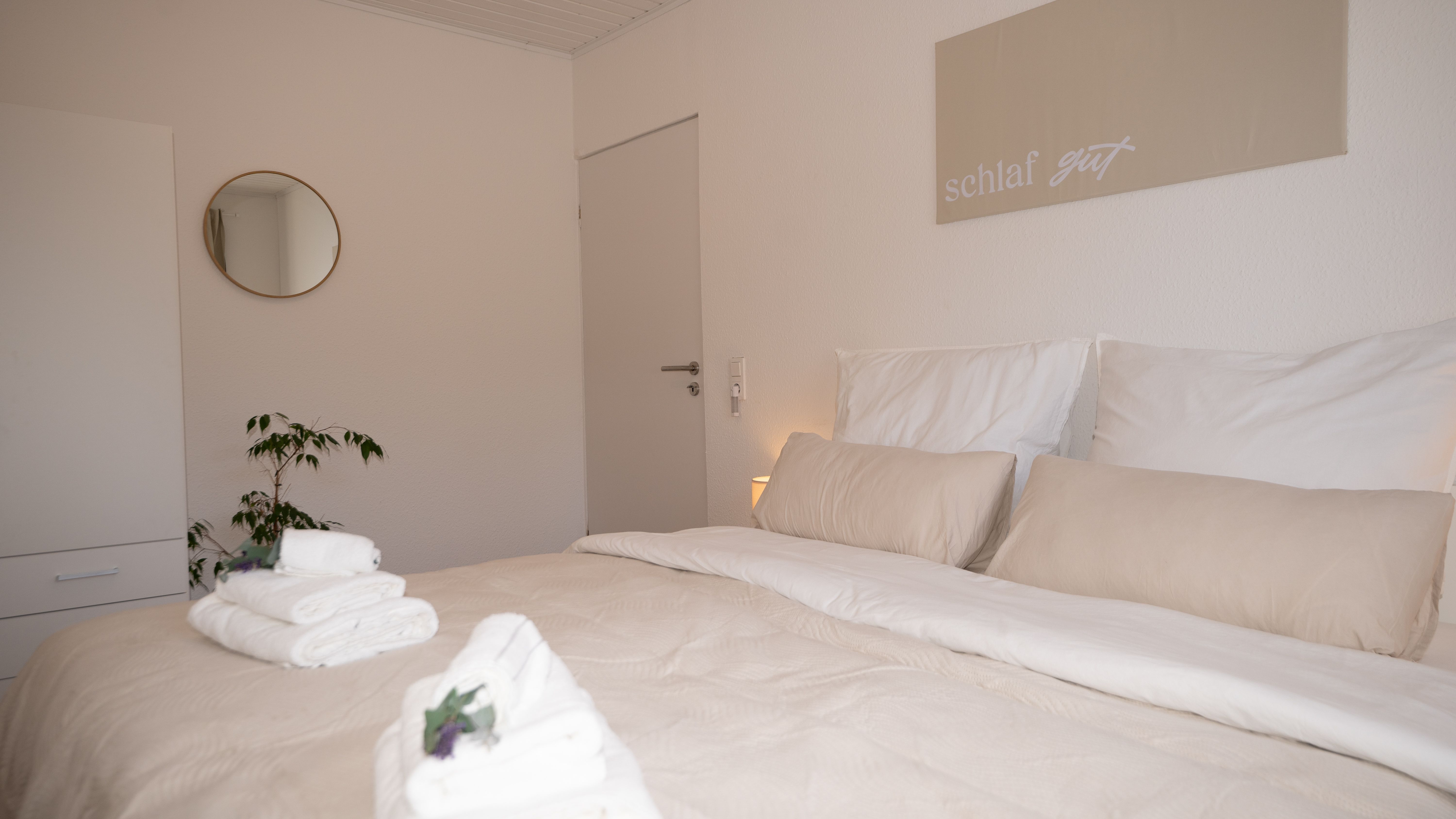 Im Schlafzimmer mit Doppelbett (Einzelmatratzen) und Kleiderschrank sowie einer Verdunklungsmöglicheit ist die Traumwelt untergebracht. Eine Garderobe mit einer Ablage für Schuhe hat gegenüber der Eingangstür Ihren Platz gefunden.