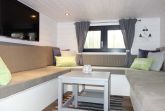 Eine U-förmige Sitzecke mit kleinem Tisch in der Mitte und einem Flachbildfernseher steht Ihnen für die gemütlichen Momente zur Verfügung.