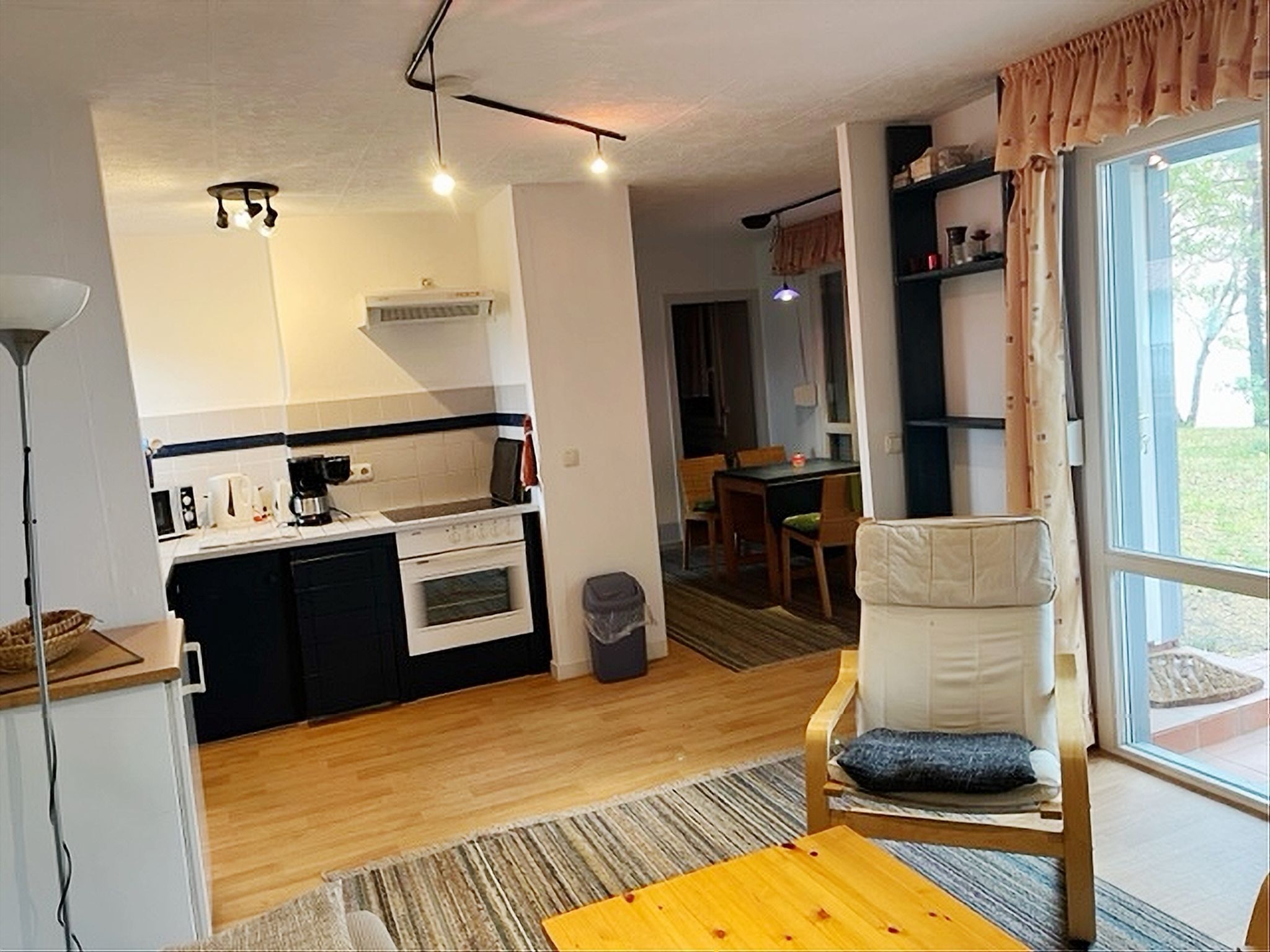 Einbauküche mit Kühlschrank/Gefrierfach, Backofen, Umlufthaube, Geschirrspüler, Kaffeemaschine, Wasserkocher, Toaster, Mikrowelle sowie Sitzecke für 4 Personen
