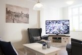Mit 144 m² Wohnfläche bietet die Wohnung jede Menge Raum für Familien mit bis zu 6 Personen. Das großzügige Wohnzimmer im Loftstil ist nicht nur gemütlicher Treffpunkt für alle, sondern bietet auch: