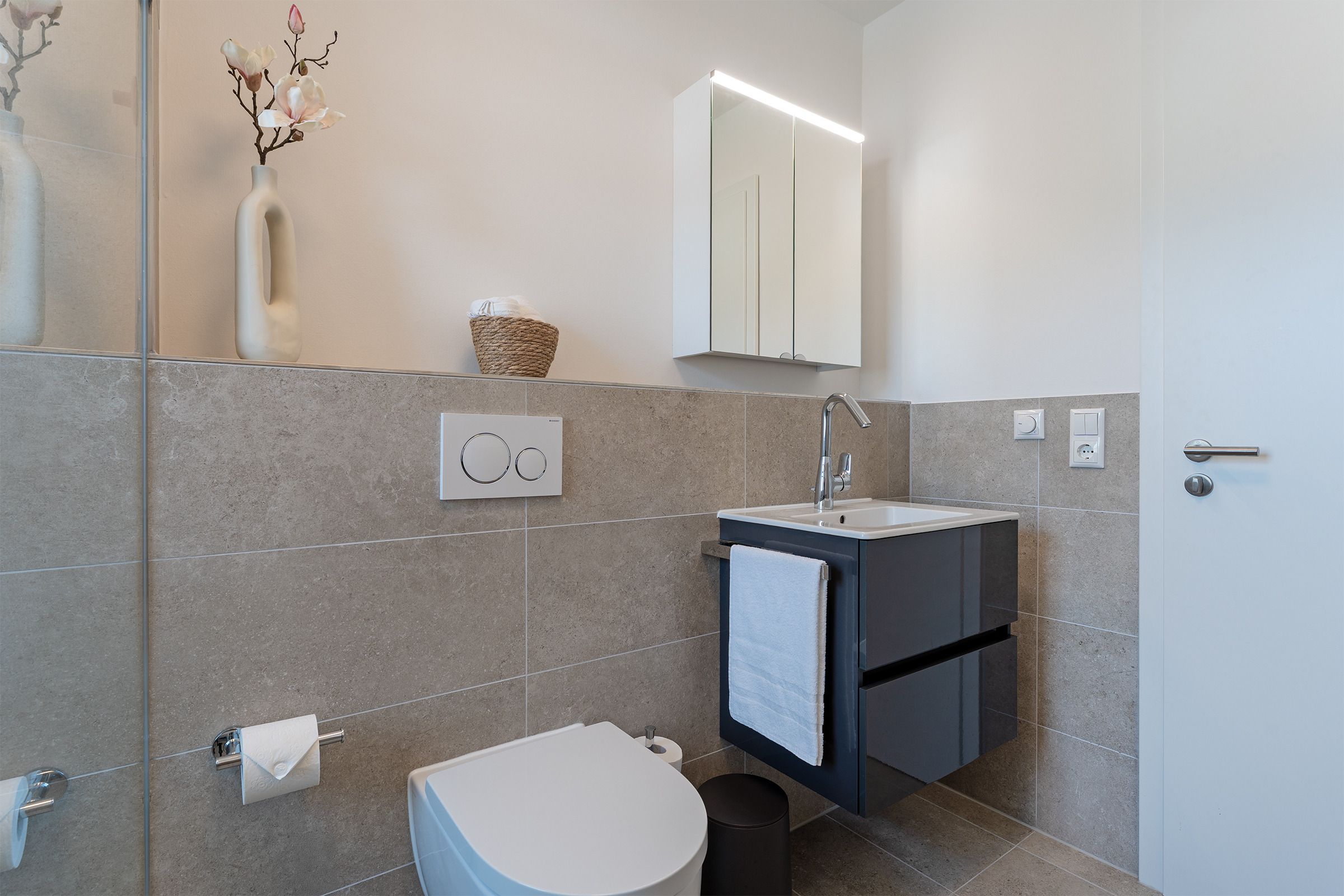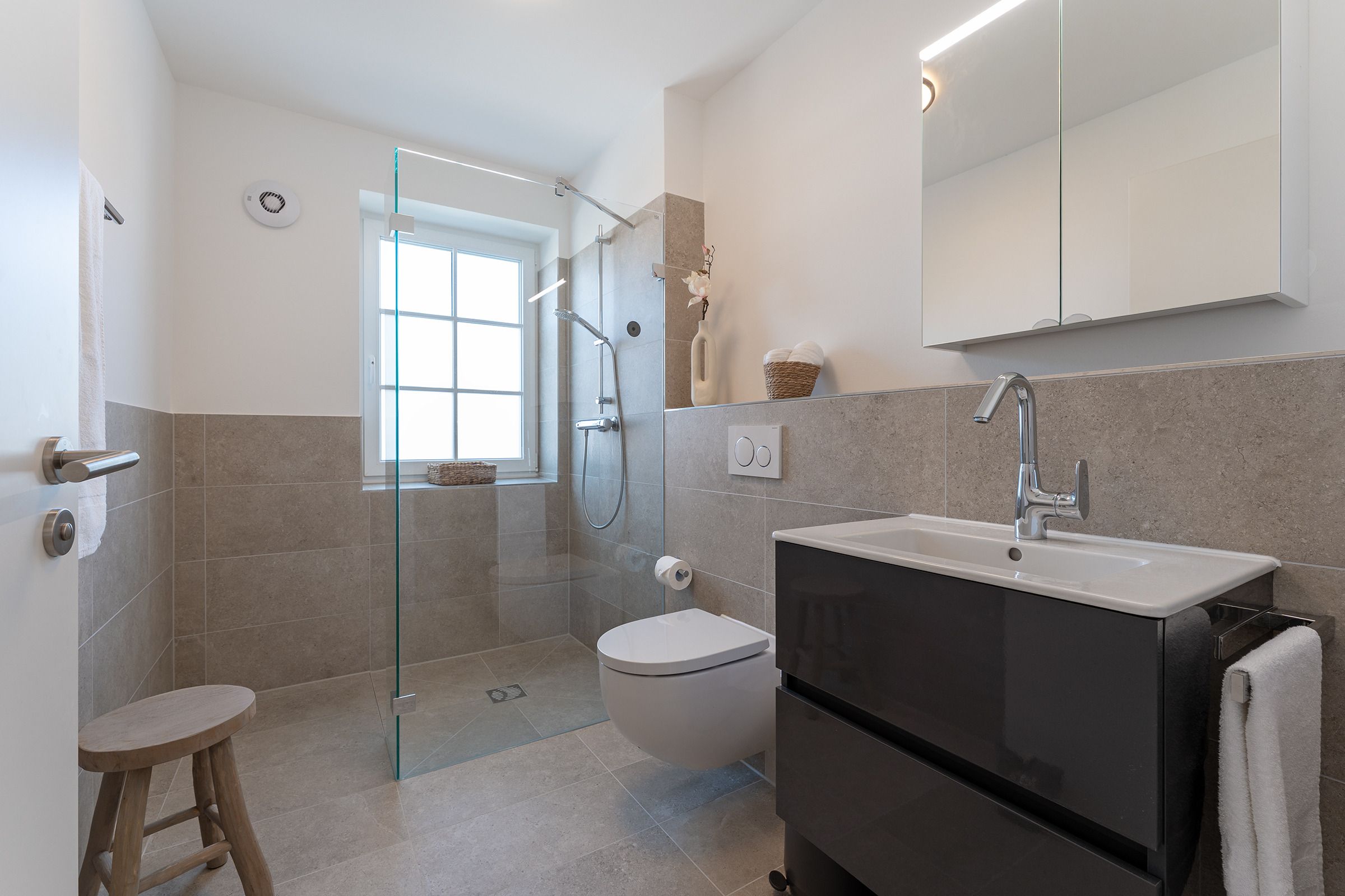 Für erholsamen Schlaf sorgen zwei separate Schlafzimmer, jeweils mit einem komfortablen Doppelbett (2x 90x200 cm und 2x 80x200 cm). Das moderne Badezimmer ist mit einer ebenerdigen Dusche, einem WC und einem Waschbecken ausgestattet und rundet das Angebot stilvoll ab.