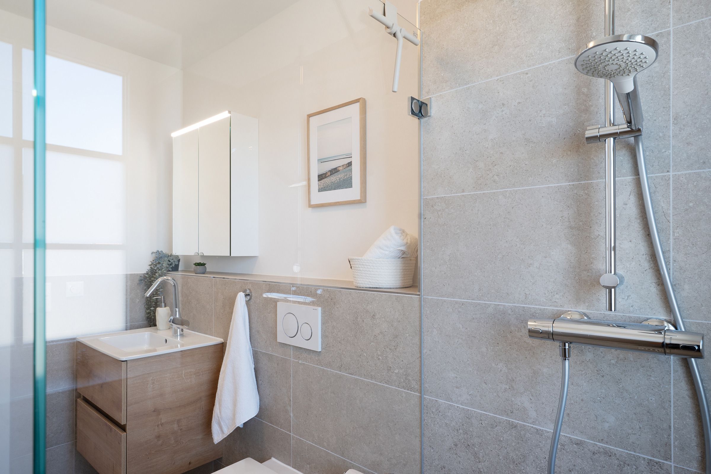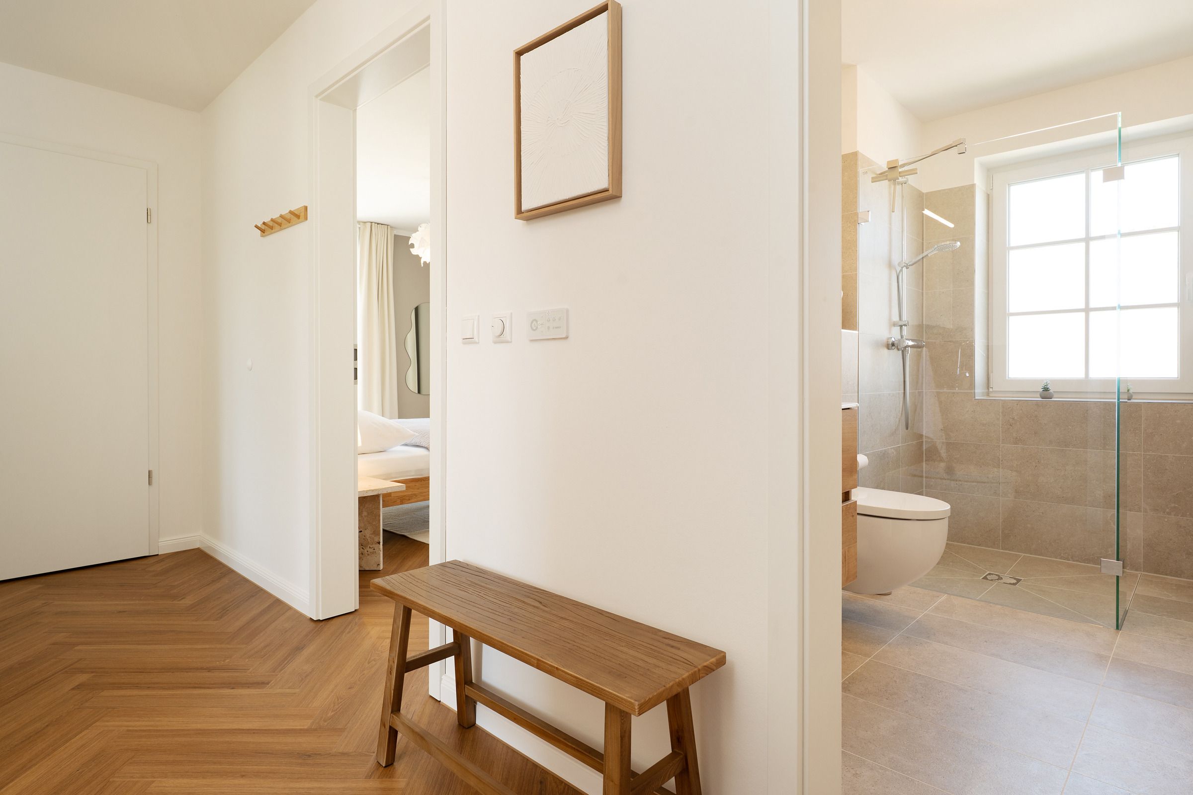 Die angrenzende Küche ist mit Geschirrspüler, Ceranfeld, Backofen, Kühlschrank, Kaffeemaschine und weiteren Annehmlichkeiten bestens ausgestattet. Zwei separate Schlafzimmer mit bequemen Doppelbetten sorgen für erholsamen Schlaf. Im Bad erwartet Sie eine Dusche mit flachem Einstieg, WC sowie eine angenehme Fußbodenheizung. Für unsere kleinen Gäste steht ein Kinderhochstuhl zur Verfügung.