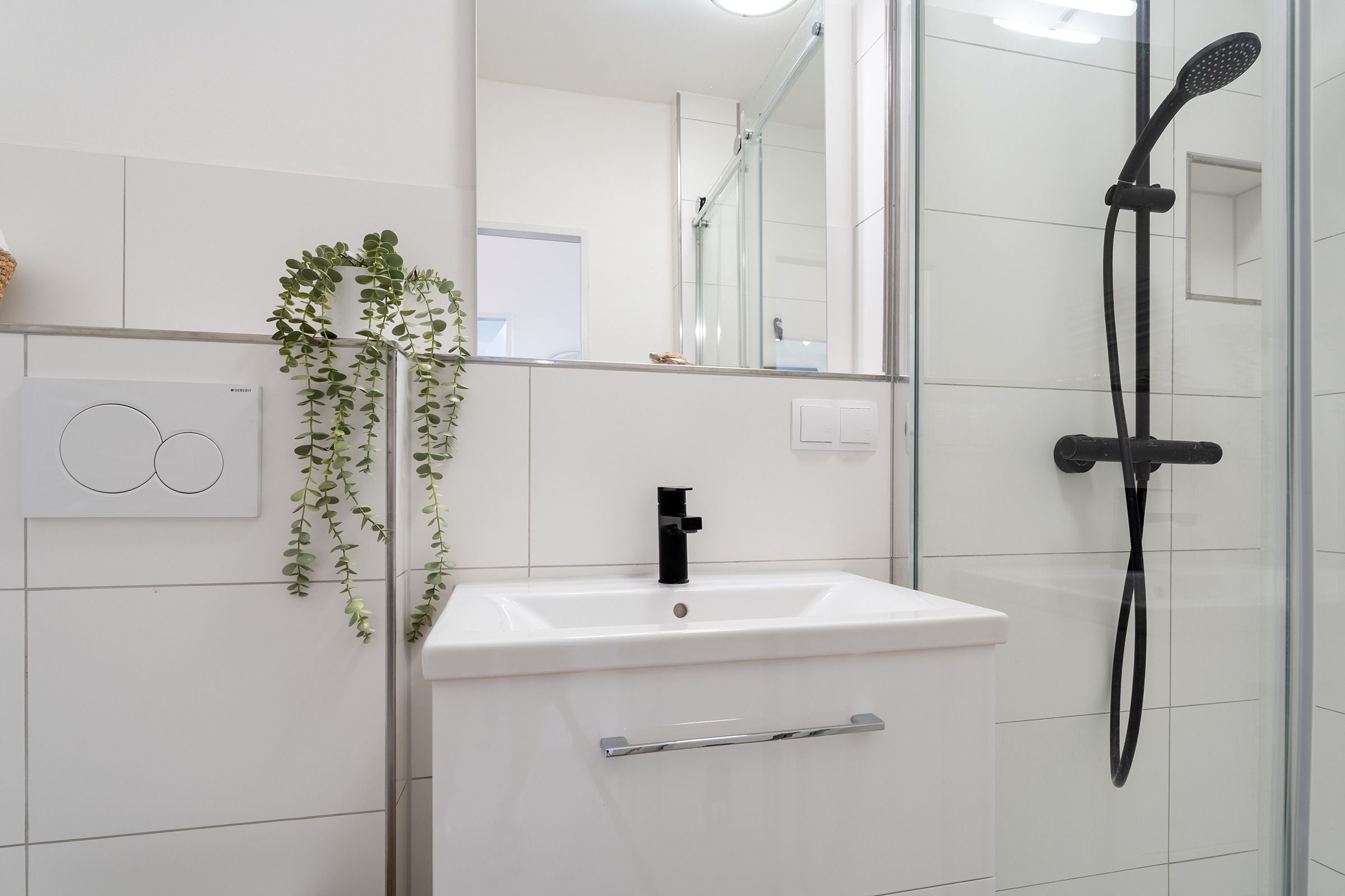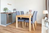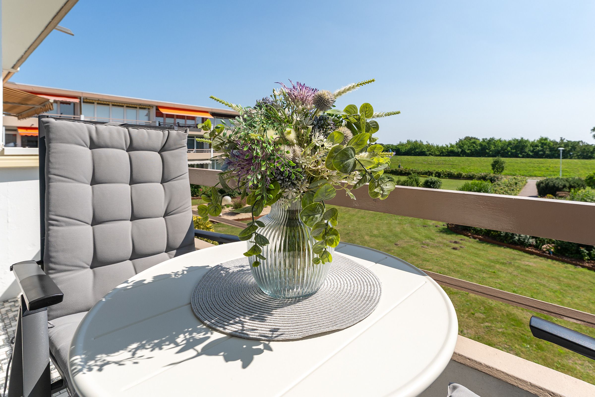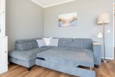 Diese charmante Wohnung liegt in einem strandnahen Appartementhaus und überzeugt durch ihre durchdachte Ausstattung. Im hellen Wohnbereich erwartet Sie ein gemütliches Sofa sowie moderne Unterhaltung über SAT-TV. Der angrenzende Balkon lädt zum Verweilen in der Sonne ein. Die separate Küchenzeile ist mit einem Mikro-Backkombigerät, 2 Cerankochfeldern, Kühlschrank, Geschirrspüler und Kaffeemaschine voll ausgestattet. Das Schlafzimmer bietet ein komfortables Boxspringbett (160x200) für entspannte Stunden. Das moderne Bad ist mit Dusche und WC ausgestattet.