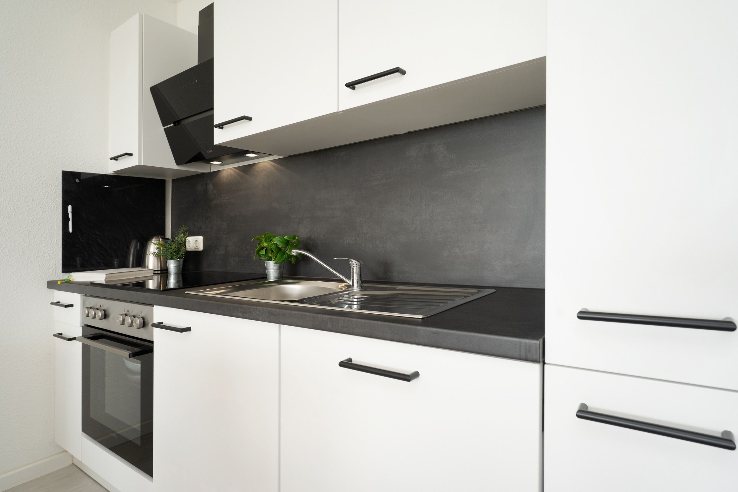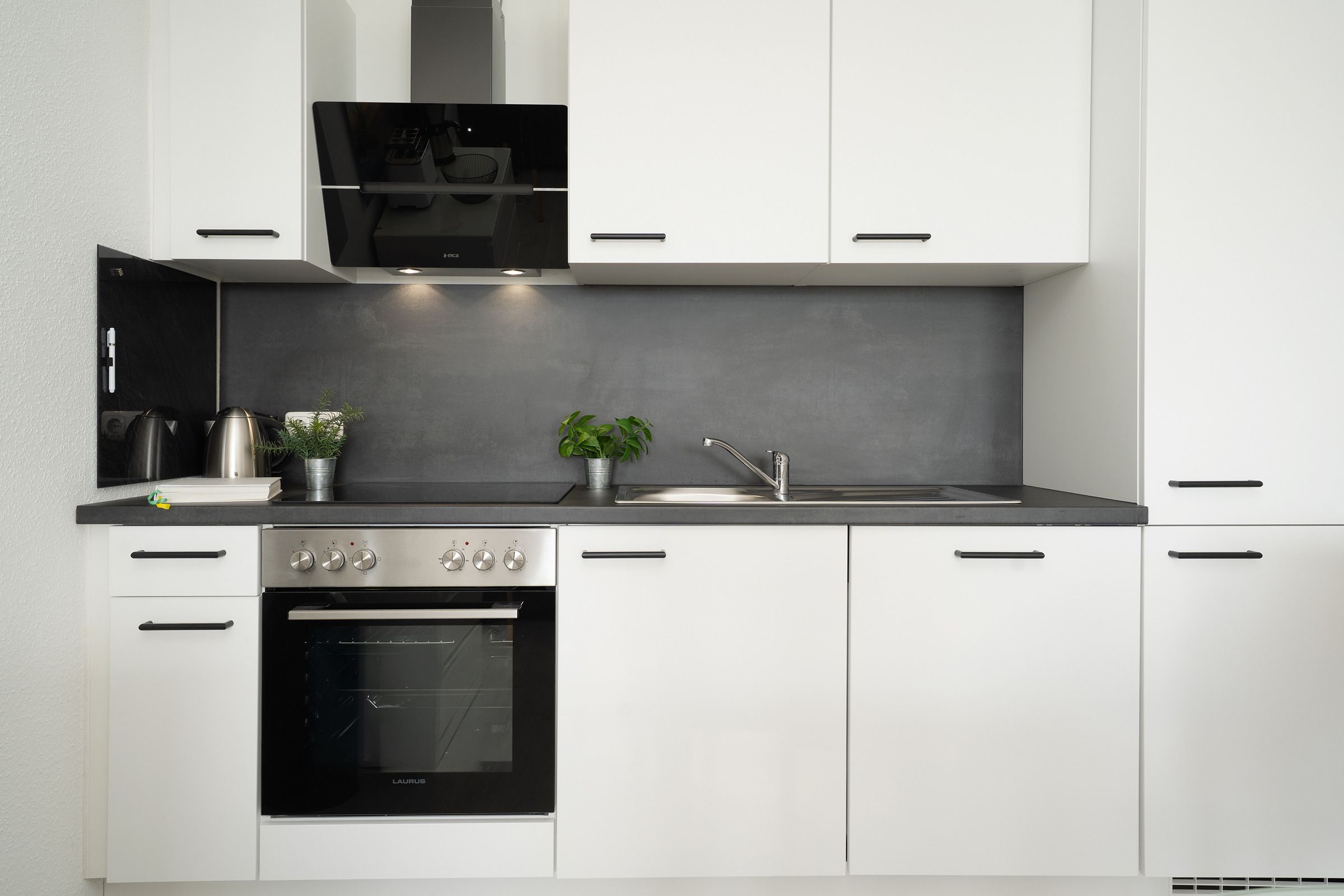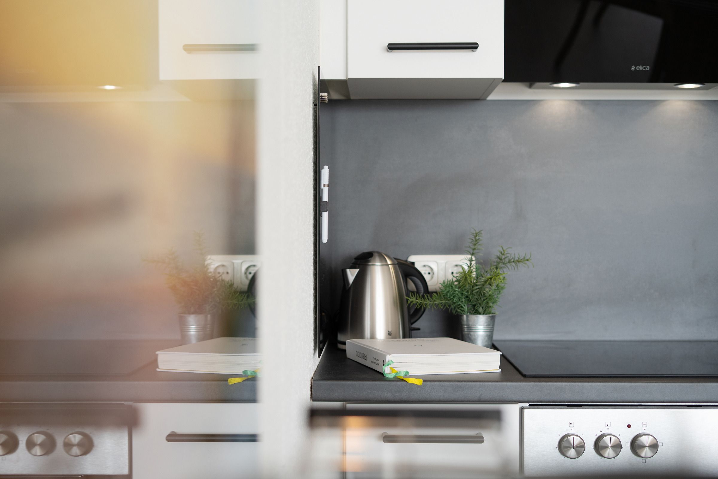 Die offene Küche bietet neben einem Cerankochfeld und Backofen auch eine Spülmaschine, Kaffeemaschine, Wasserkocher und Toaster – hier lässt sich bequem für die ganze Familie kochen. Der Essplatz schafft ein geselliges Ambiente für gemeinsame Mahlzeiten.