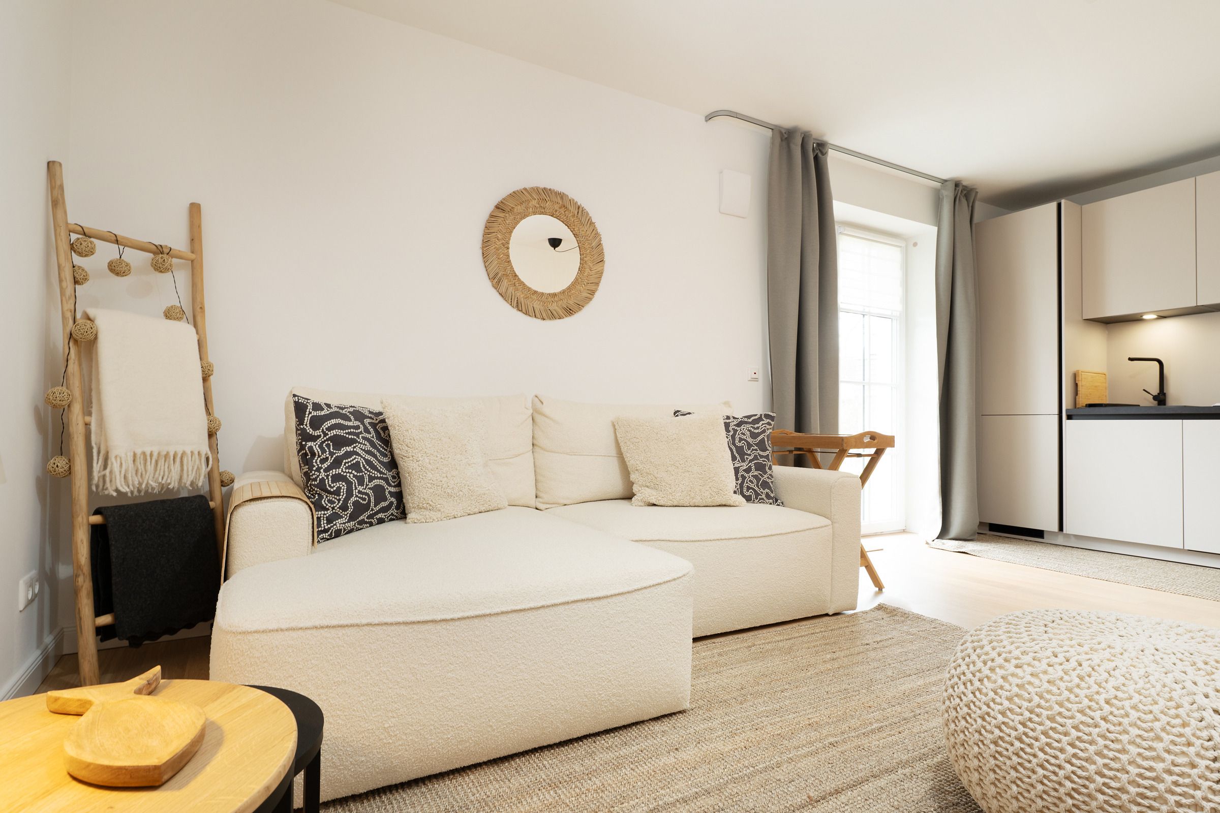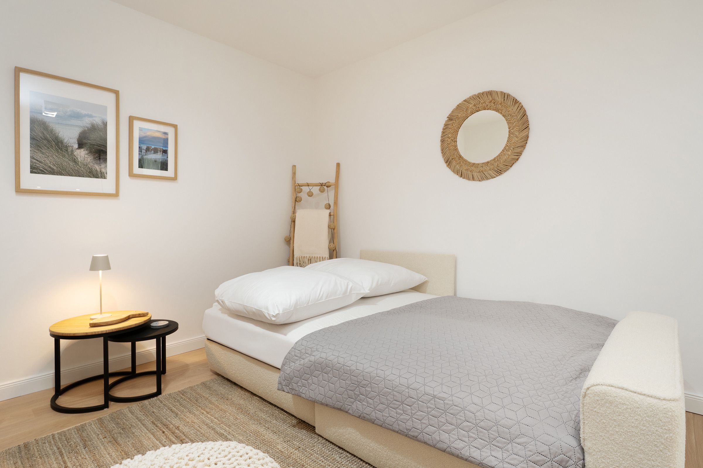 Die angrenzende Küche ist mit Geschirrspüler, Ceranfeld, Backofen, Kühlschrank, Kaffeemaschine und weiteren Annehmlichkeiten bestens ausgestattet. Das separate separate Schlafzimmer mit bequemem Doppelbett sorgt für erholsamen Schlaf. Zwei weitere Gäste finden auf dem komfortablen Schlafsofa im Wohnzimmer Platz. Im Bad erwartet Sie eine Dusche mit flachem Einstieg, WC sowie eine angenehme Fußbodenheizung.