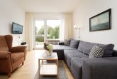 Im gemütlichen Wohnbereich erwartet Sie ein Sofa, ein Flachbildfernseher, für entspannte Stunden in Kreise der Liebsten. Von hier aus gelangen Sie direkt auf die Terrasse, die mit 12 m² Platz zum Entspannen bietet. Dank der Südwest-Ausrichtung genießen Sie hier die Sonne bis in die Abendstunden – ein Holzkohlegrill steht für gesellige Grillabende bereit.