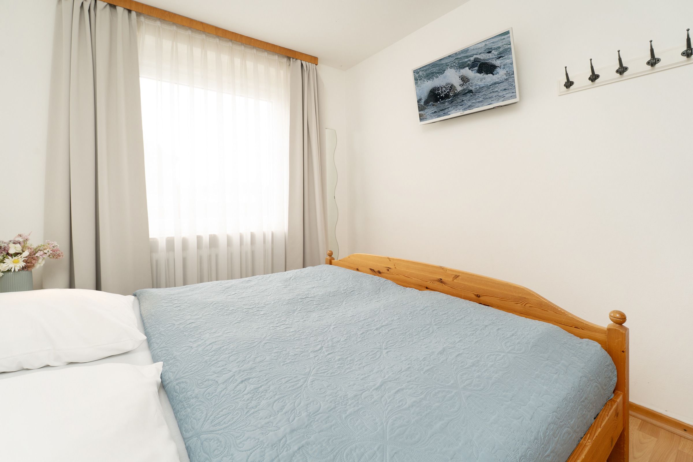 Die Wohnung verfügt über zwei Schlafzimmer, die jeweils mit einem komfortablen Doppelbett eingerichtet sind und somit erholsame Nächte garantieren. Das moderne Badezimmer bietet eine Dusche (Einstiegshöhe 24 cm), WC, Haartrockner, Kosmetikspiegel sowie einen beheizbaren Handtuchhalter.