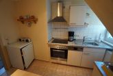 In der modernen Küche finden sich neben dem E-Herd mit Glaskeramik-Kochfeld und Backofen auch ein Geschirrspüler, Kühlschrank, Kaffeemaschine, Wasserkocher, Toaster und weitere Küchengeräte.