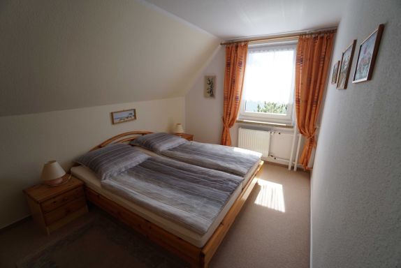 Die Ferienwohnung verfügt über 2 Schlafzimmer. Im größeren von beiden steht ein komfortables Doppelbett und ist mit Teppich ausgelegt.