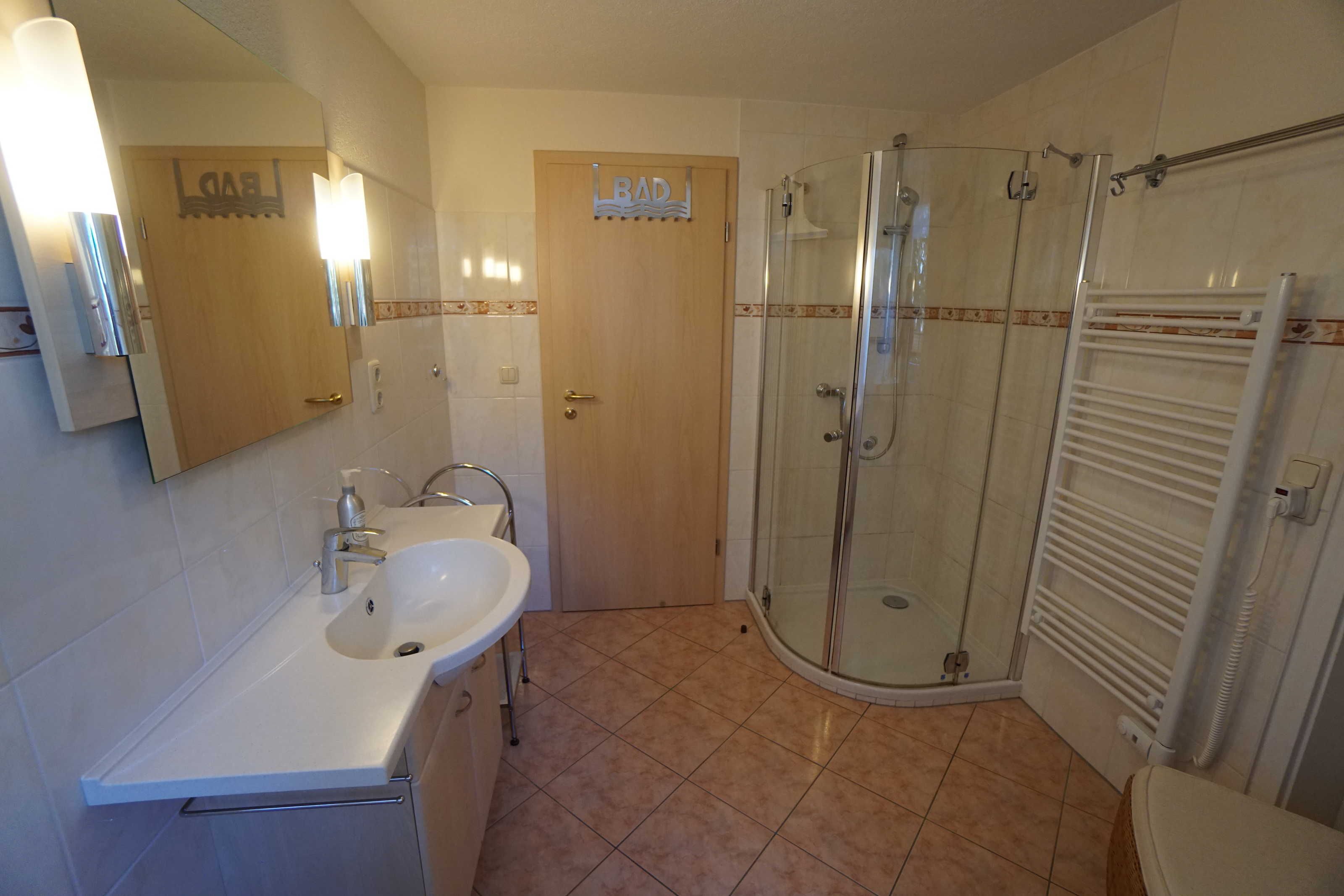 Im Badezimmer mit hochwertigem Duschbad können Sie sich erfrischen.