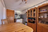 Die kleine süße Küche bietet, was zwei bis drei Personen für einen Aufenthalt benötigen mit Zweiplatten-Ceranherd, Mikrowelle, Kühlschrank mit Tiefkühlfach, Toaster, Wasserkocher und Kaffeemaschine.