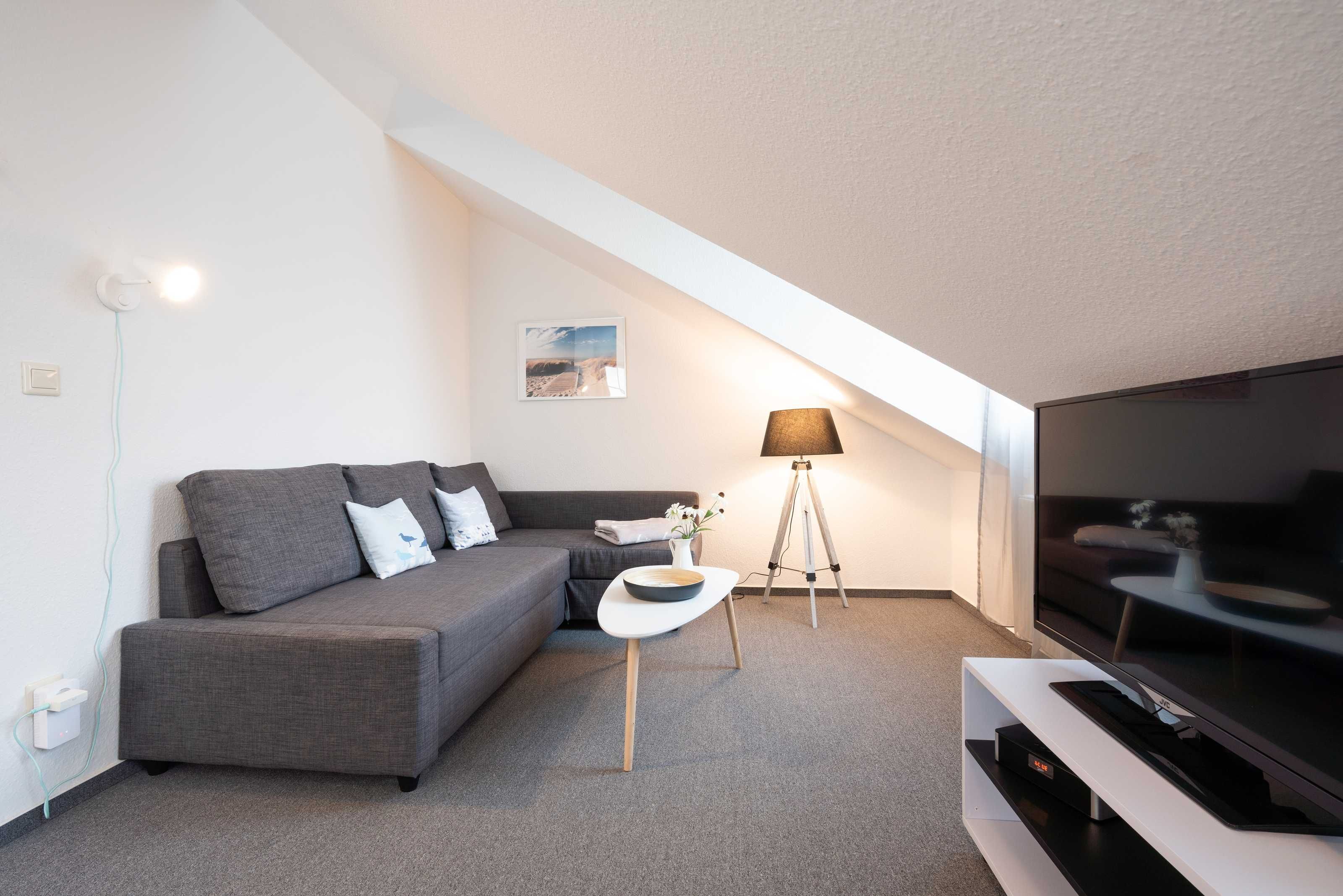 Unser Einzimmerapartment Möwennest lädt dazu ein, eine entspannte Zeit in Ahlbeck zu verbringen. In der kleinen modernen Küche können Sie sich ein leckeres Essen zubereiten. Selbstverständlich können Sie bei schlechtem Wetter auch im gemütlichen King Size Bett fernsehen. Das Bad verfügt über eine Dusche, Waschtisch, WC sowie einen Fön.