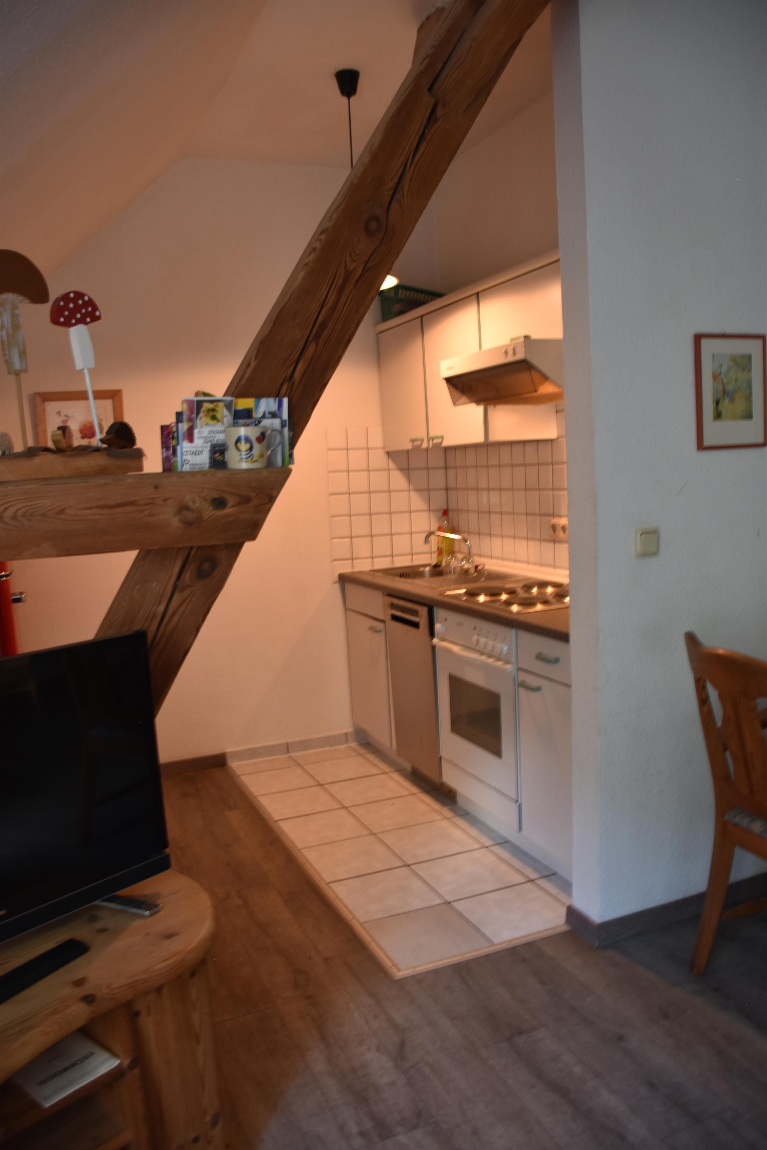 Im hellen Wohnbereich erwarten Sie ein Sofa, Sessel, Sat-TV, Radio und kostenfreies WLAN – perfekt zum Entspannen nach einem erlebnisreichen Tag an der Nordsee. Die angrenzende Wohnküche ist vollständig ausgestattet und verfügt über Geschirr, Spülmaschine, Backofen-Herd-Kombination, Kaffeemaschine, Wasserkocher und Mikrowelle.