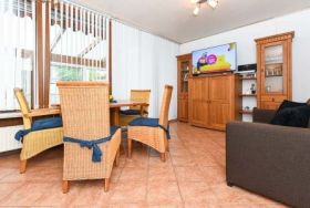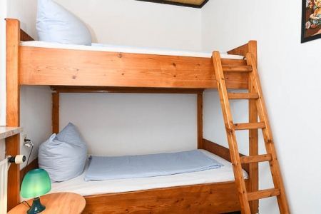 Im Objekt befindet sich ein Wohnzimmer mit Essecke. Es ist eine komplett ausgestattete Einbauküche mit allen nötigen Küchenutensilien und Geräten vorhanden. Es ist ein Schlafzimmer mit einem Ehebett vorhanden. Im Kinderzimmer befindet sich ein Etagenbett. Ein Kinderreisebett und ein Kinderhochstuhl sind auch vorhanden. Das Bad ist mit einer Dusche ausgestattet. Bettwäsche und Handtücher auf Anfrage