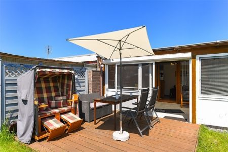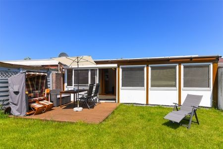 • Unser Haus in ruhiger Lage verfügt über einen Wohnraum und zwei separate Schlafzimmer. Das Schlafzimmer ist mit einem Boxspringbett ausgestattet. Die abgetrennte Küche ist komplett ausgestattet mit Geschirrspüler, Mikrowelle, Backofen und Ceranfeld. Das Bad verfügt über eine Dusche, WC und Waschbecken. Auf der Liegewiese kann man die Sonne genießen. Unser Haus hat einen Wintergarten von 30qm.