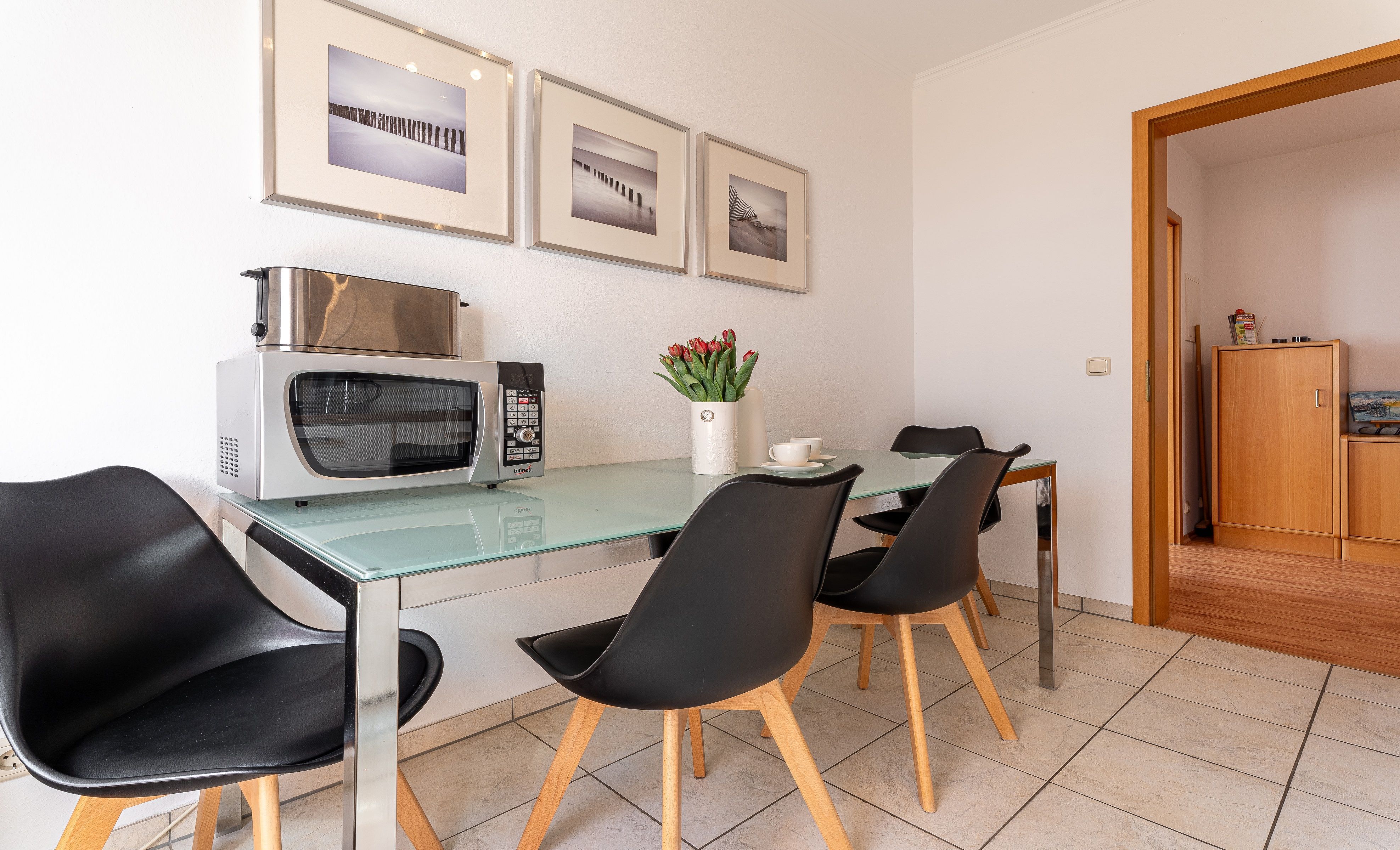Die moderne Küche ist mit allem ausgestattet, so z.B. Mikrowelle, Geschirrspüler, Backofen, Ceranfeld, Wasserkocher, Kaffeemaschine, Senseo-Kaffeepad Maschine, Toaster, sowie Kühl- und Gefrierkombi. Starten Sie Ihren Tag doch mit einem heißen Kaffee auf einem der zwei Balkone.