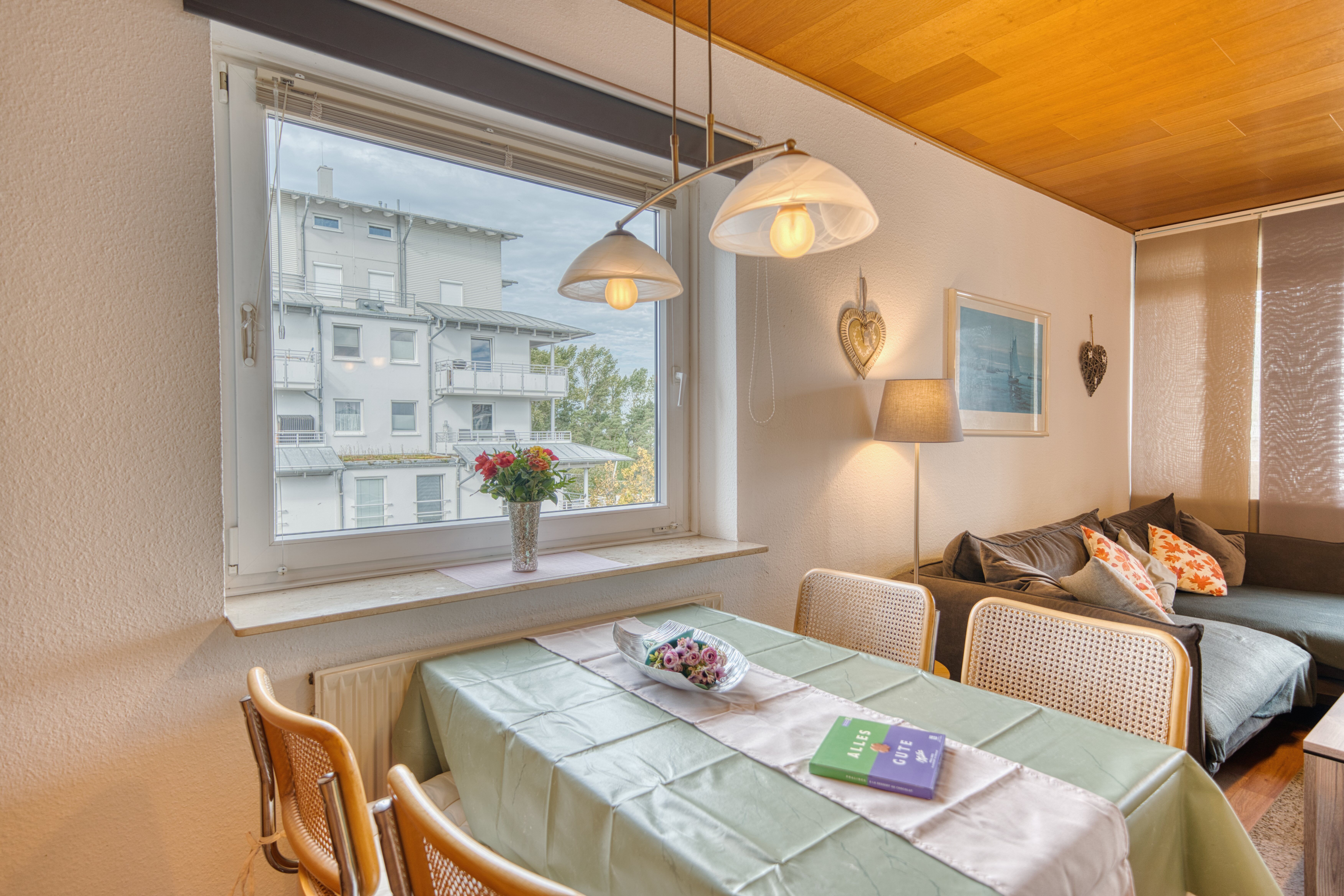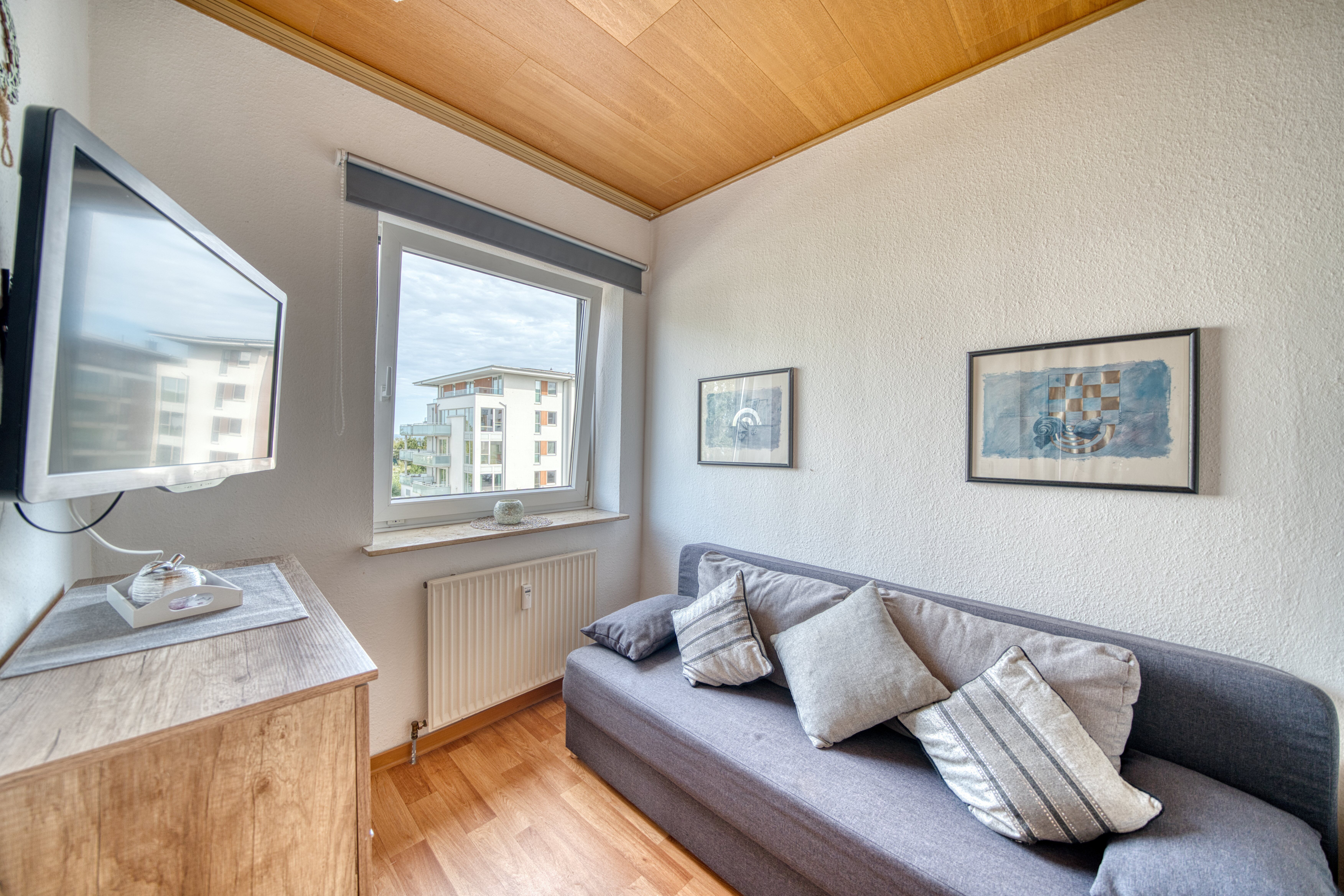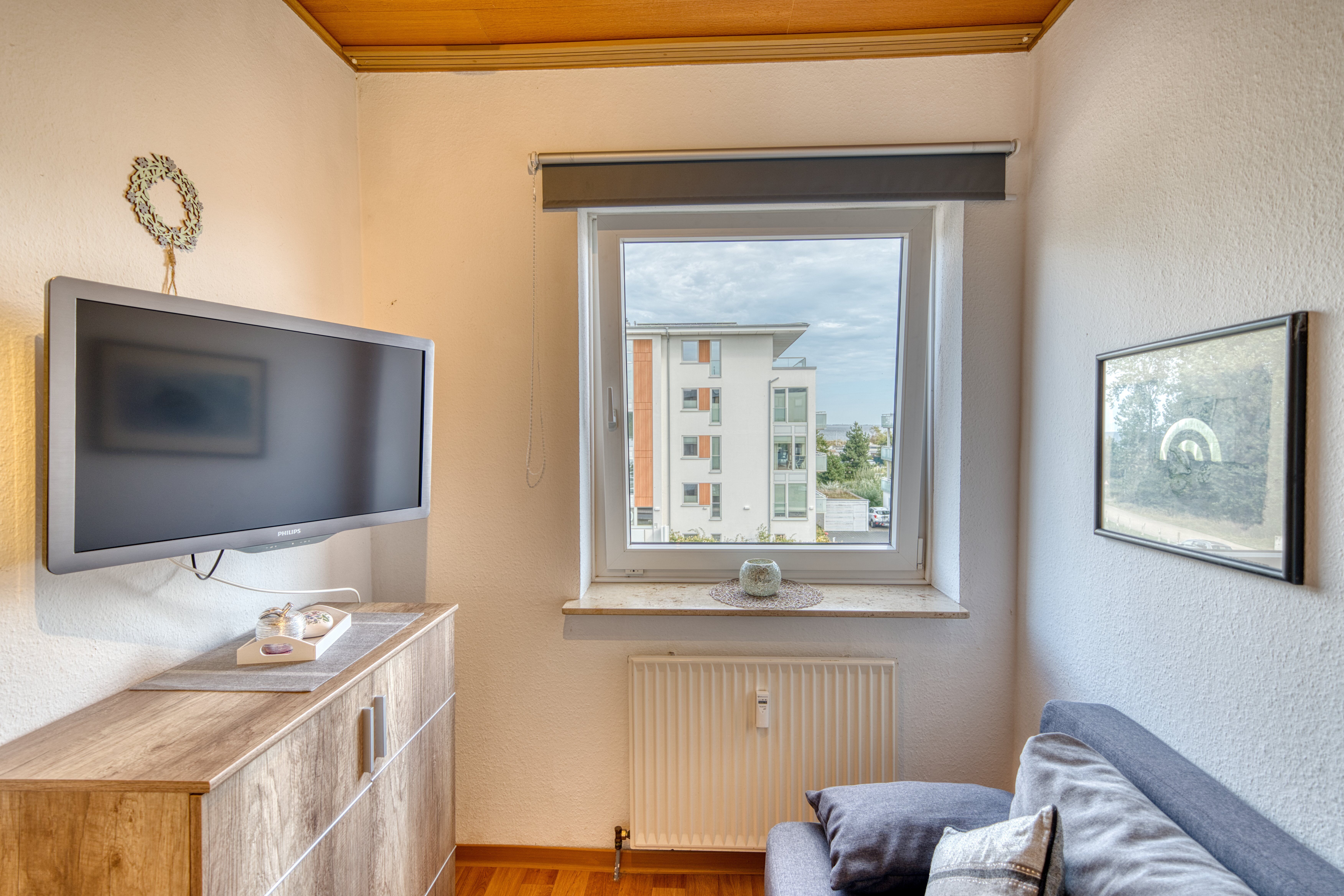 Wohnzimmer mit Binnenseeblick sowie teilweisem Meerblick und gemütlicher Ausstattung
