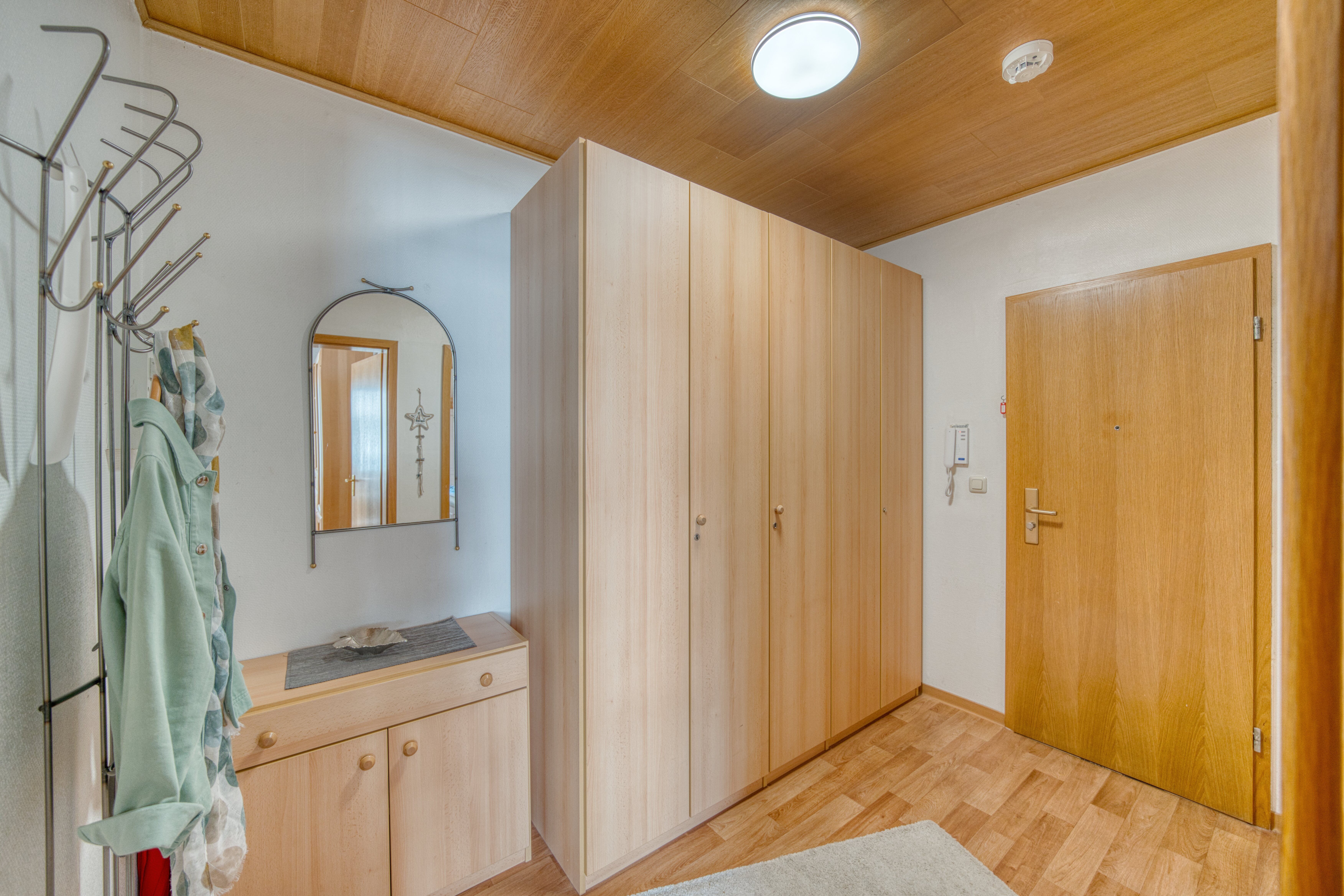 Praktischer Flur mit geräumigem Kleiderschrank für Ihr Gepäck