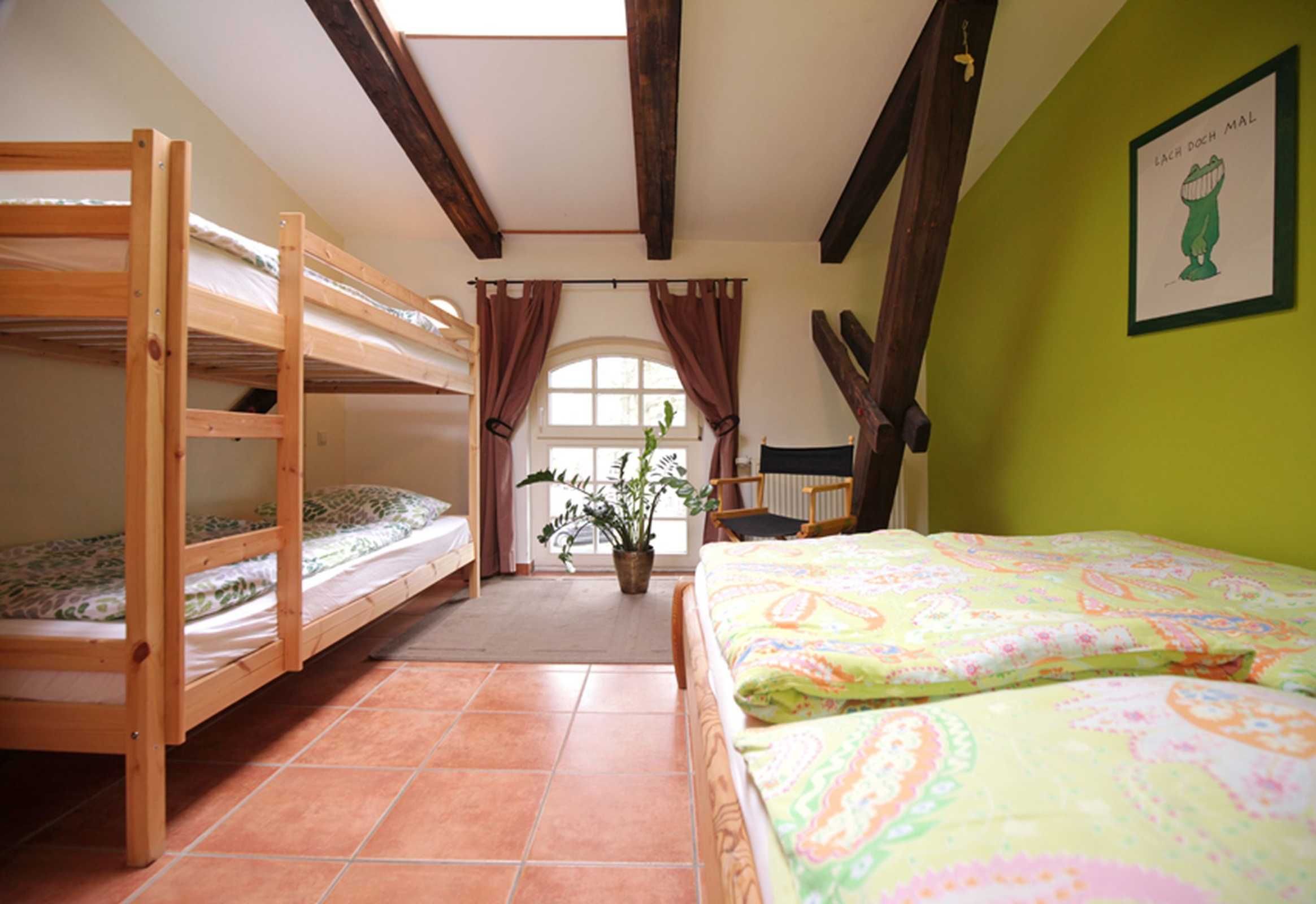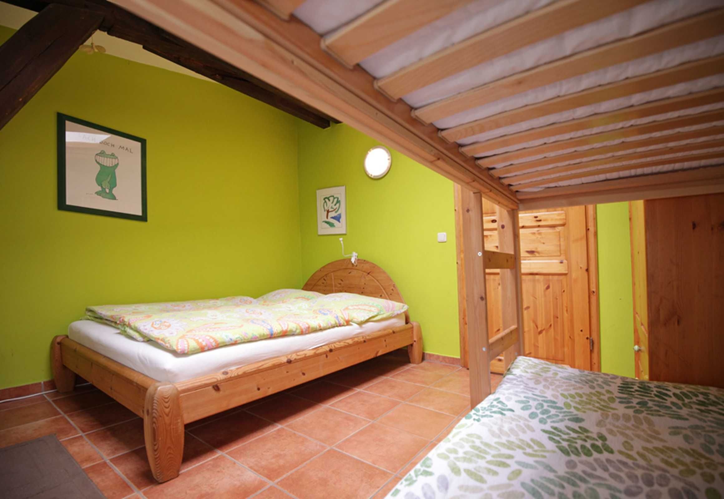 - Schlafzimmer (12qm) mit Doppelbett (140cm) und Etagenbett
