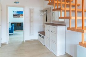Dieses charmante Ferienhaus bietet auf ca. 120 qm alles, was Sie für einen entspannten Aufenthalt benötigen. Genießen Sie die Annehmlichkeiten eines modernen Badezimmers, sowie den Komfort in 3 Schlafzimmern. Zwei Schlafzimmer verfügen über ein großes Kingsize-Doppelbett, während das dritte Schlafzimmer mit zwei Einzelbetten ausgestattet ist. Das Haus verfügt über eine Fußbodenheizung. Die voll ausgestattete Küche bietet alle Möglichkeiten für kulinarische Genüsse. Für gesellige Abende im Freien steht ein Grill bereit, während Sie drinnen auf dem Smart-TV Ihre Lieblingssendungen verfolgen können. Das Highspeed Internet/Wlan sorgt dafür, dass Sie auch während Ihres Aufenthalts bestens vernetzt sind. Die Terrasse lädt zum Verweilen ein. Das Grundstück ist komplett umzäunt, was Ihnen zusätzliche Privatsphäre gibt. Das Ferienhaus ist sehr kinderfreundlich eingerichtet. 2 x Reisebett, 2 x Hochstuhl, Kindergeschirr und Kinderbesteck, Spielzeug, Treppenschutzgitter, Bollerwagen, sowie ein Spielplatz mit Schaukel und Rutsche stehen Ihnen zur Verfügung. Wer es aktiv mag, wird im Schuppen fündig, hier stehen 2 Fahrräder zur Verfügung (Nutzung auf eigene Gefahr, keine Garantie für Verkehrstauglichkeit).