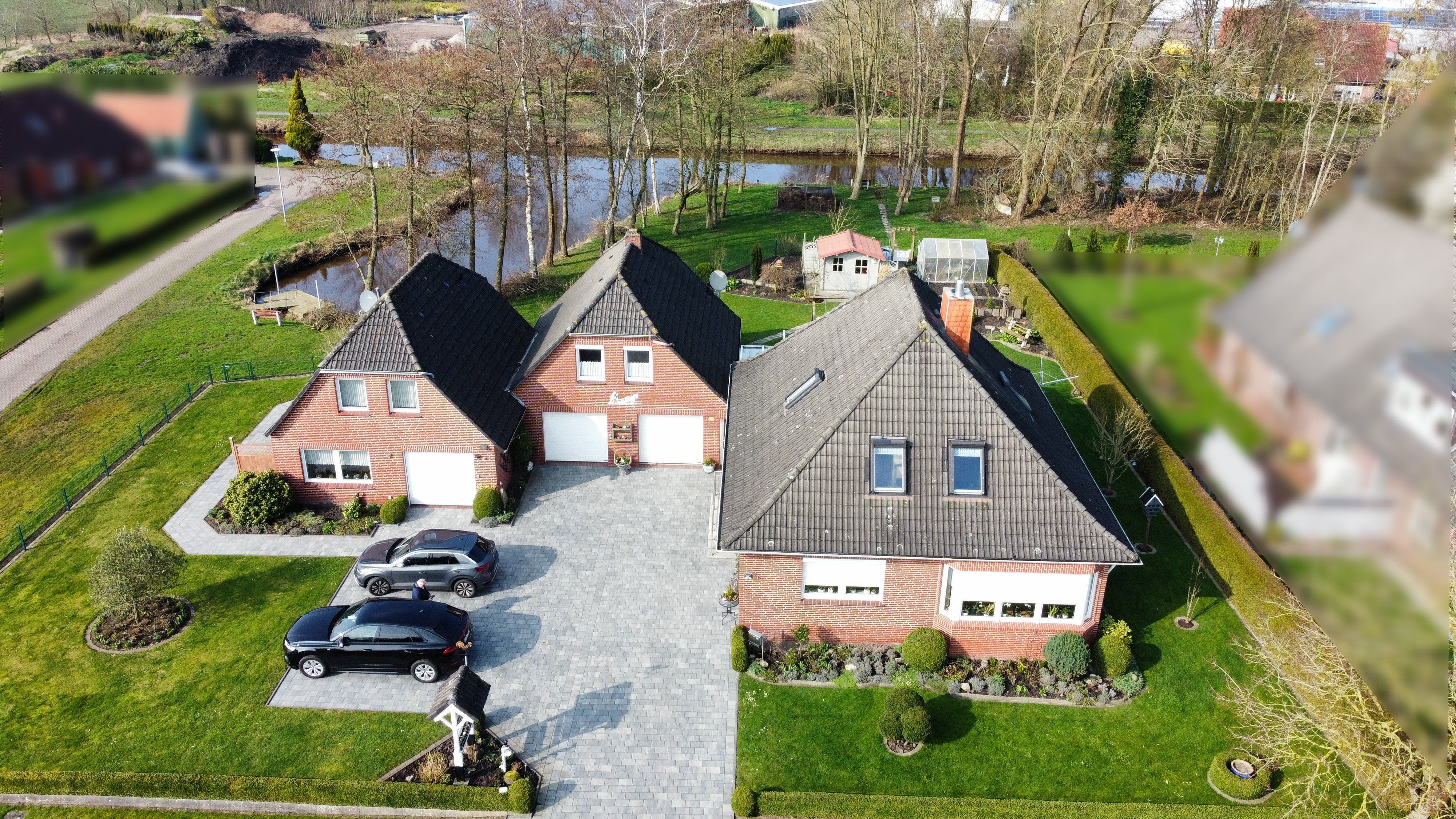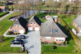 Das Ferienhaus (72qm) befindet sich in ruhiger Lage am Kanal gelegen. Im ERdgeschoss befindet sich ein gemütliches Wohnzimmer mit Couchgarnitur 2,5-2-1 sowie eine moderne Anbauwand mit Sat-TV, DVD-Player und Radio. Ebenfalls unten ist die Einbauküche mit Spülmaschine, Kühlschrank mit Frostfach, Mikrowelle, Toaster, Senseo, Kaffemashine sowie 4 Esszimmerstühle mit Tisch. Zwei Schlafzimmer mit je einem Doppelbett (2x2m & 2x1,80m) und Bettwäsche befinden sich im Obergeschoss. Die Diele oben ist mir einem Flachbildfernseher und einer Couch ausgestattet. Die Dusche/WC mit Föhn und Handtüchern befindet sich im OG. Ein Kinderhochstuhl sowie ein Reisebett können bei Bedarf gestellt werden. Eine überdachte Terrasse mit gemütlichen Gartenmöbeln, Liege und Grill liegt neben dem Eingangsbereich mit Blick zum Kanal (Ridding). Eine Abstellgarage für Gäste-Fahrräder sowie eine Waschmaschine und Trockner stehen gegen Benutzungsgebühr von je 2,00 Euro zur Verfügung.
