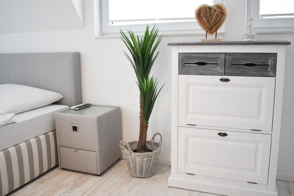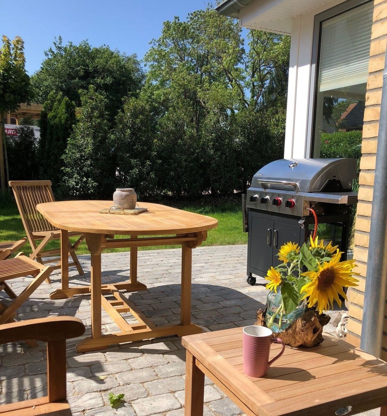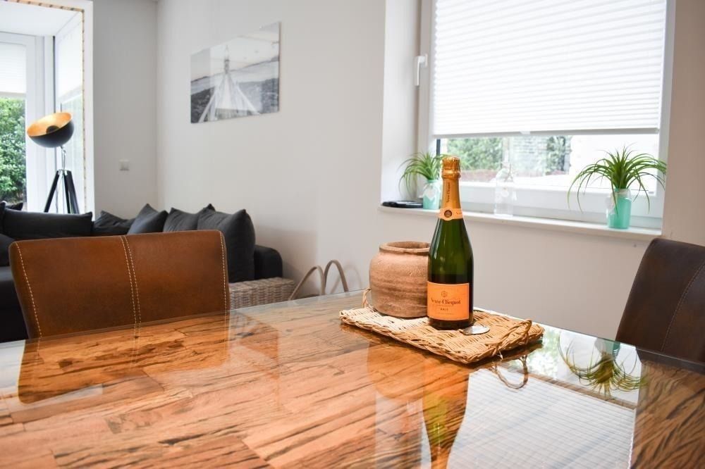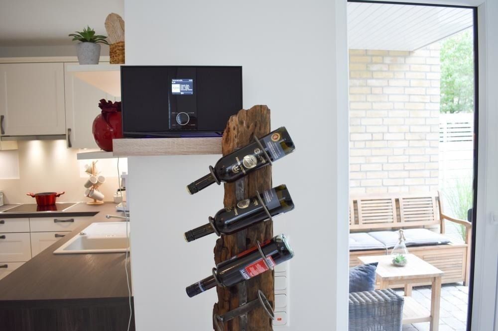 Das stilvolle Haus ist Ende 2019 fertiggestellt und modern, maritim eingerichtet. Große bodentiefe Fenster im Wohn- und Schlafbereich und moderne Bodenbeläge sorgen für eine helle und gemütliche Atmosphäre. Im Wohnzimmer befinden sich eine bequeme Couch und ein hochwertiger Essbereich im maritimen Stil für sechs Personen. An das Wohnzimmer grenzt ein kleiner Wintergarten, der vom sonnigen Garten umgeben ist. Im Erdgeschoss können Sie neben dem Gäste-WC die hauseigene, moderne Sauna im geräumigen Saunaraum erleben. Die offene Marken-Küche ist unter anderem mit Markengeräten von Neff mit Induktionsherd, Kühl-/Gefrierschrank, Backofen, Mikrowelle, Kaffeevollautomat und Geschirrspülmaschine ausgestattet. Im Obergeschoss befinden sich zwei Schlafzimmer jeweils mit Boxspringbetten. Das eine Schlafzimmer ist in L-Form geräumig geschnitten und komfortabel mit Doppelbett, XL-Couchsessel und hochwertigen Elektrokamin ausgestattet. Vom Schlafzimmer aus gelangen Sie zum Südbalkon. Das weitere Schlafzimmer im Obergeschoss ist mit zwei Boxspring-Einzelbetten versehen, die auch als Doppelbett zusammengestellt werden können. Beide Schlafzimmer sind mit Verdunkelungs-Plissee´s für ein angenehmen Schlaf ausgestattet. Das modern geflieste Badezimmer ist als Vollbad mit Dusche, WC und Badewanne ausgestattet. Das Dachgeschoss hat seinen Charm durch die hohe Giebel-Decke und bietet weiteren Schlafraum mit einem Doppelbett. Alle Schlafräume sowie das Wohnzimmer sind mit großen, modernen Flachbild-Fernsehern mit Telekom MagentaTV ausgestattet. Schnelles Glasfasernetz mit WLan und Fußbodenheizung sind im ganzen Haus vorhanden.