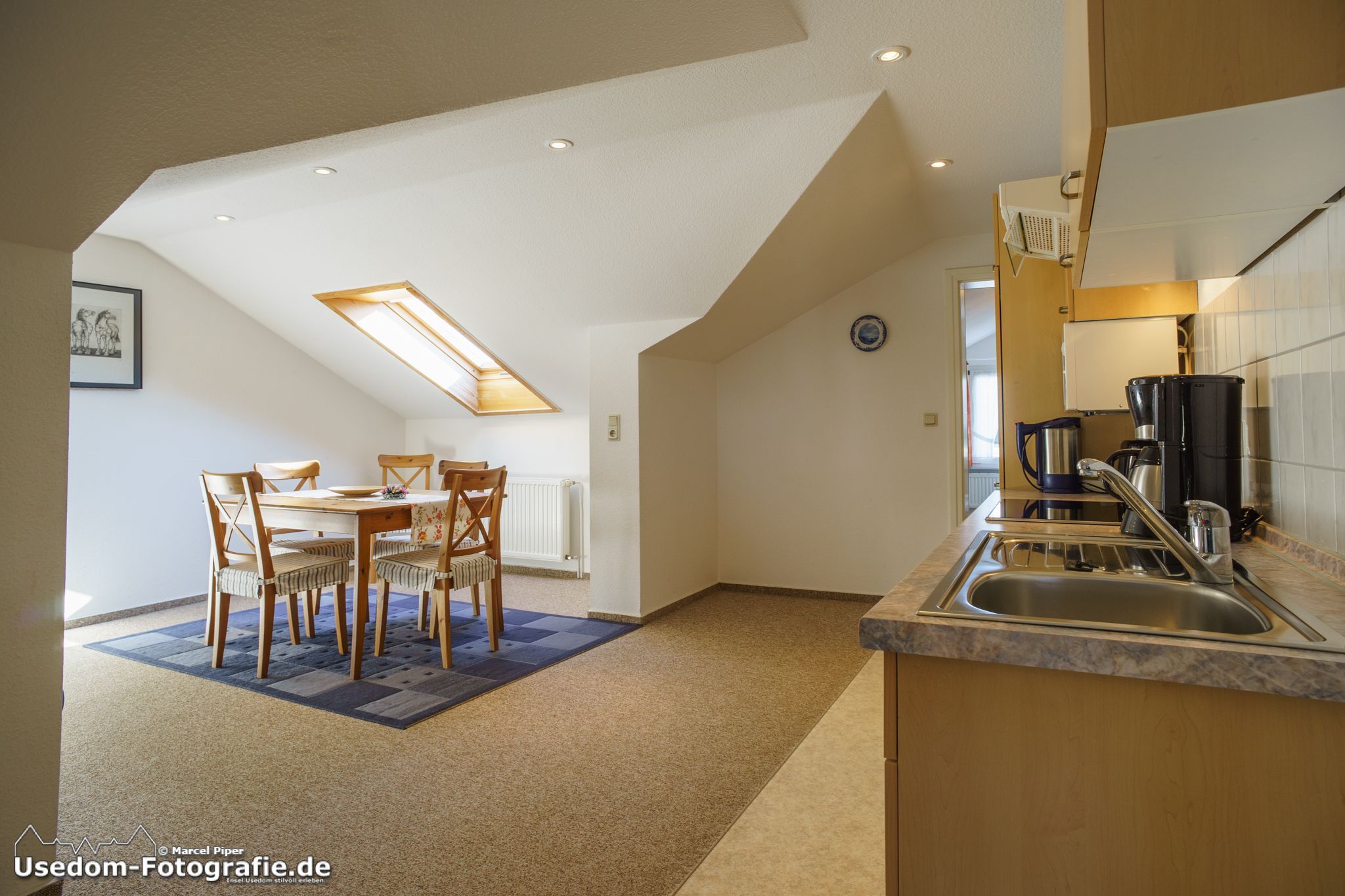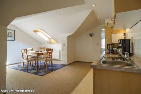 Genießen Sie Ihren Urlaub in dieser schönen 2-Raumwohnung. Der Wohnraum bietet durch eine funktionale Aufteilung von Wohn- Küchenbereich genug Platz für die gesamte Familie. In der Küche stehen Geschirrspüler, Backofen/Herd, Mikrowelle, ein Kühlschrank mit Gefrierteil sowie einen Esstisch zur Verfügung. Zur Wohnung gehört ein Schlafzimmer mit Doppelbett sowie eine Einzelbett. Das Badezimmer ist mit einer Dusche ausgestattet.