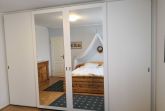 Durch die Eingangstür gelangen Sie in einen kleinen Flur mit Garderobe. Von dort geht das geräumige Schlafzimmer (ca. 20 qm), dass mit einem Doppelbett und einem großem Schrank ausgestattet ist, ab.