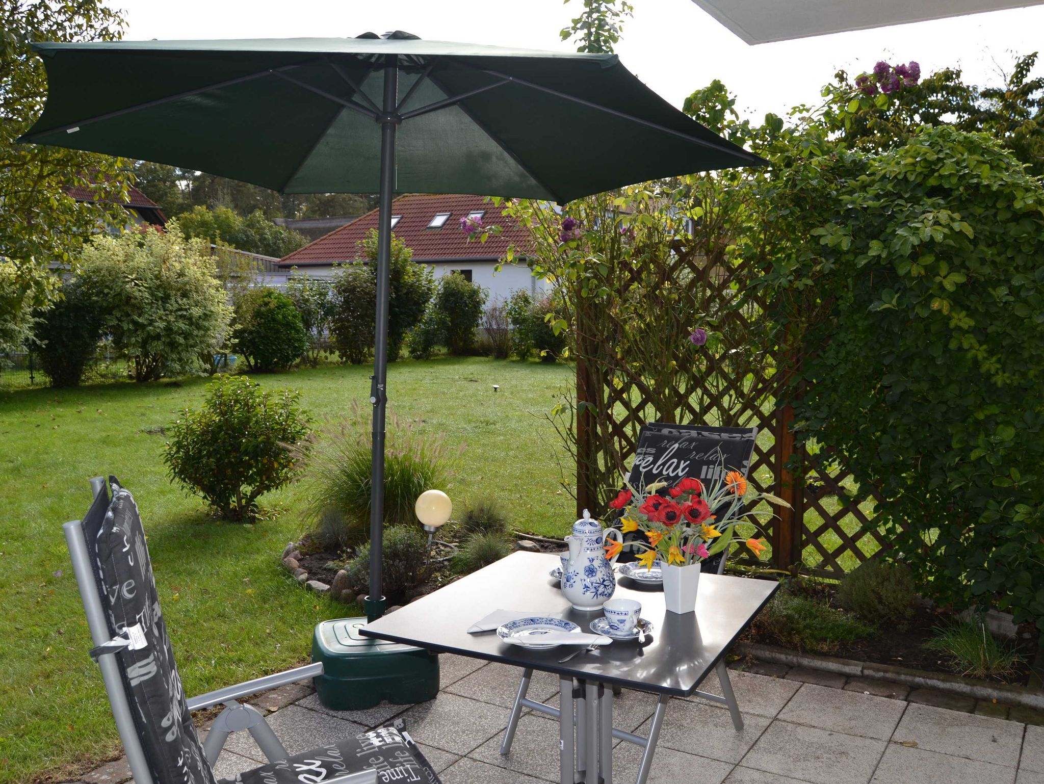 Genießen Sie sonnige Stunden auf der schönen Terrasse mit eigenem großen Gartenanteil, entspannen Sie bei einem guten Buch oder starten Sie mit einem Frühstück im Freien in den Tag.